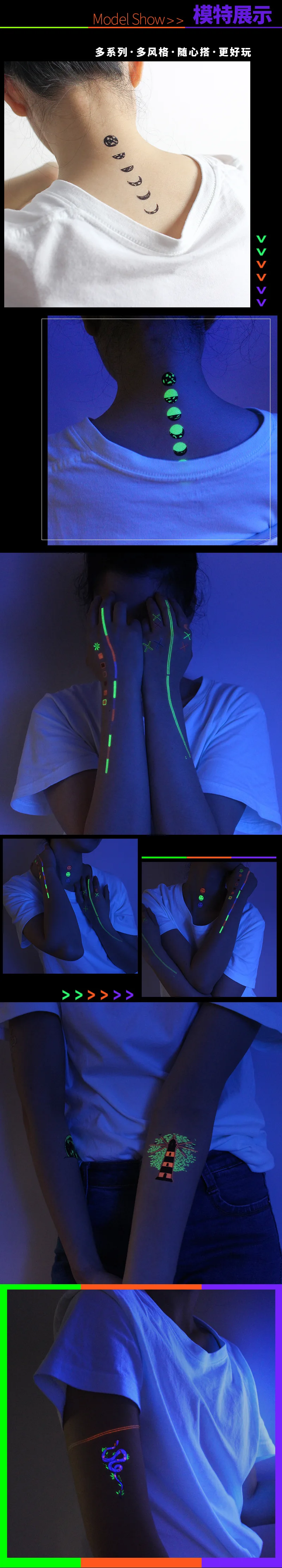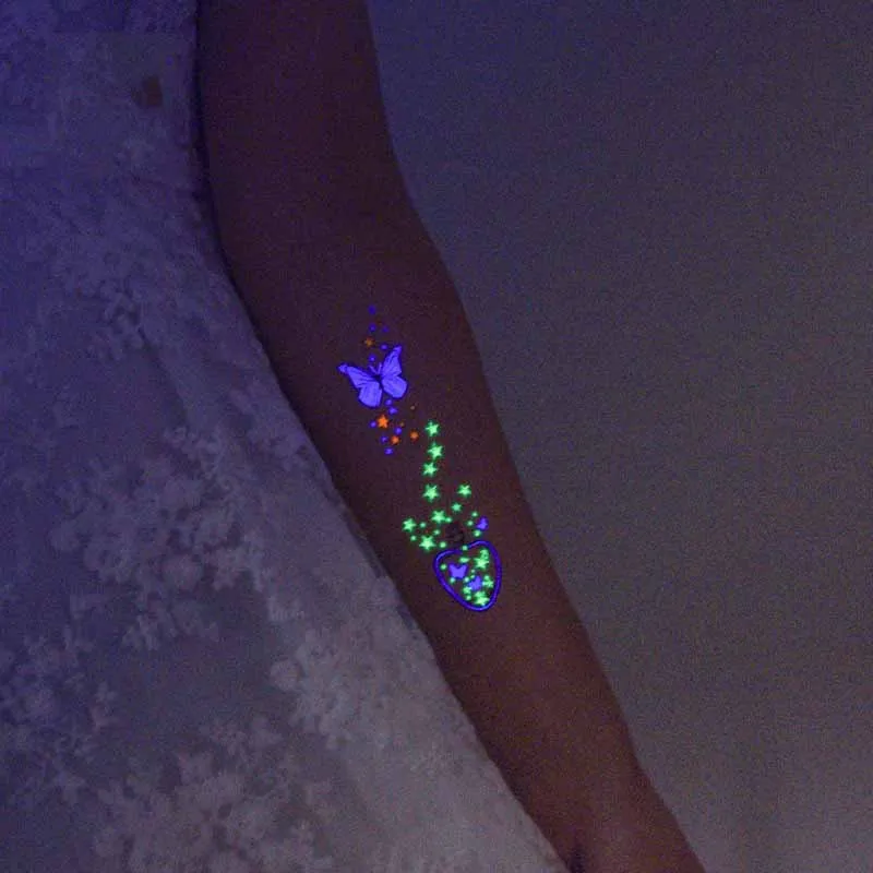 Светящаяся тату-наклейка Morixi для детей, макияж тела, Бабочка, буквы, геометрические фигурки, крутые флуоресцентные линии на лице RA087