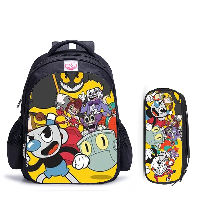 Рюкзак для мальчиков и девочек, детский школьный ранец с принтом Cuphead Mugman 16 дюймов, для повседневного использования и путешествий, школьные подарки