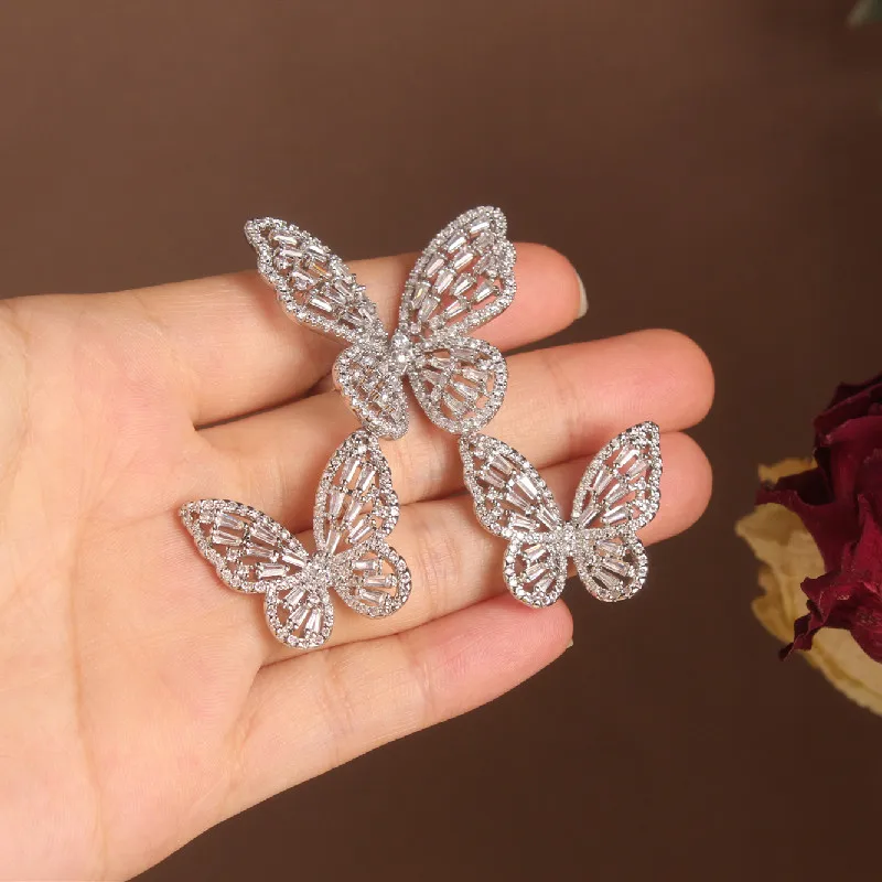 Женские серьги с кольцом и бабочкой, корейские ювелирные изделия, инкрустированные медью, черные, открытые, 2020