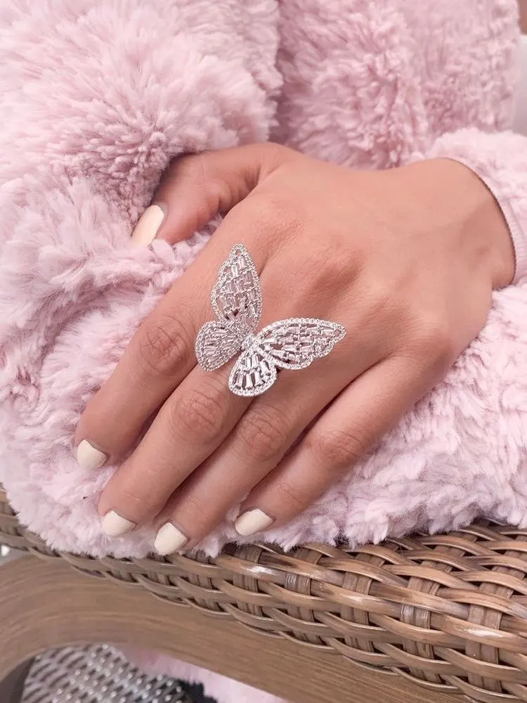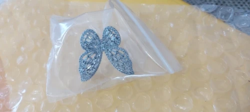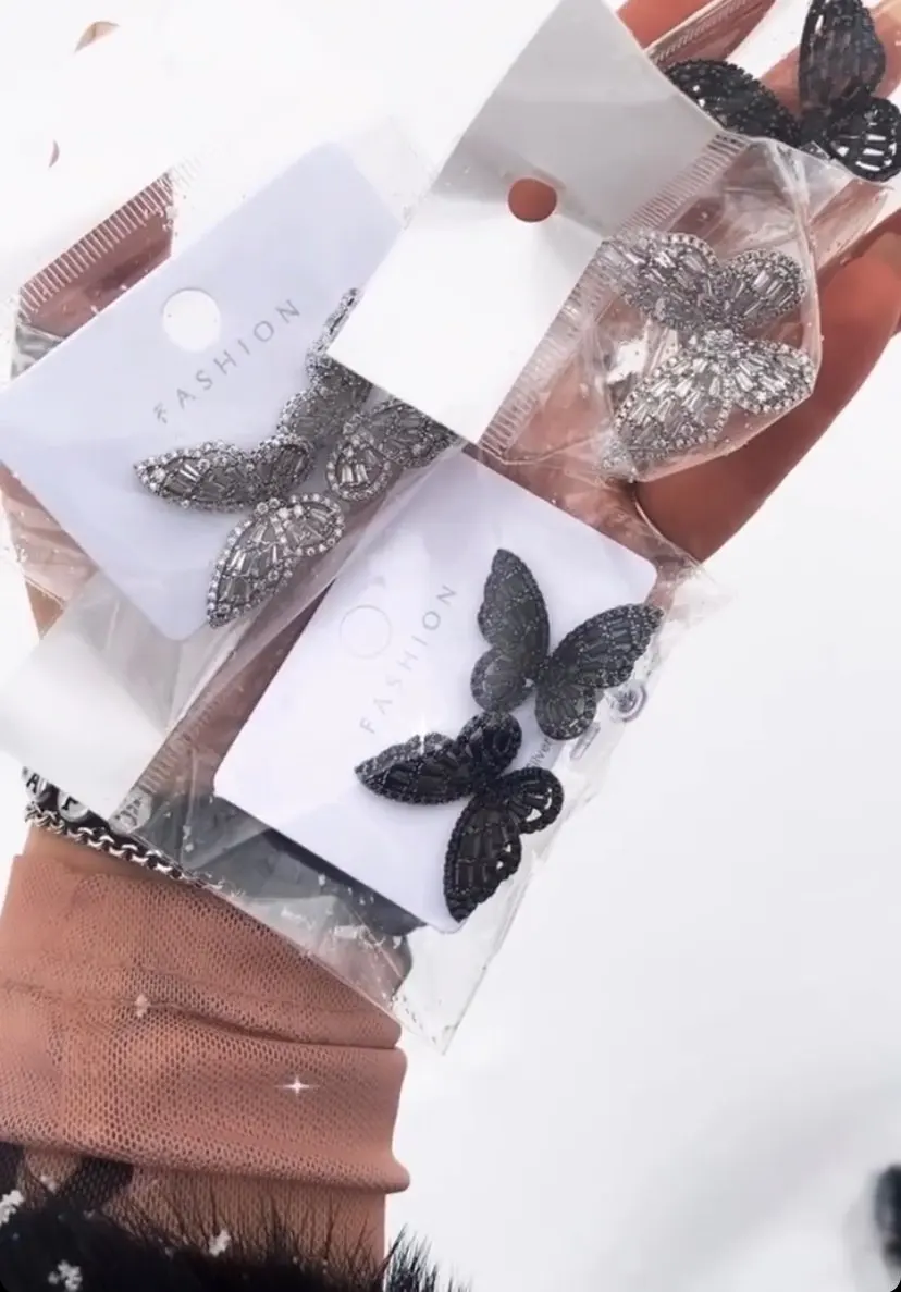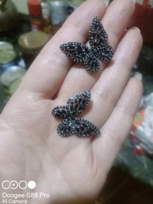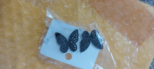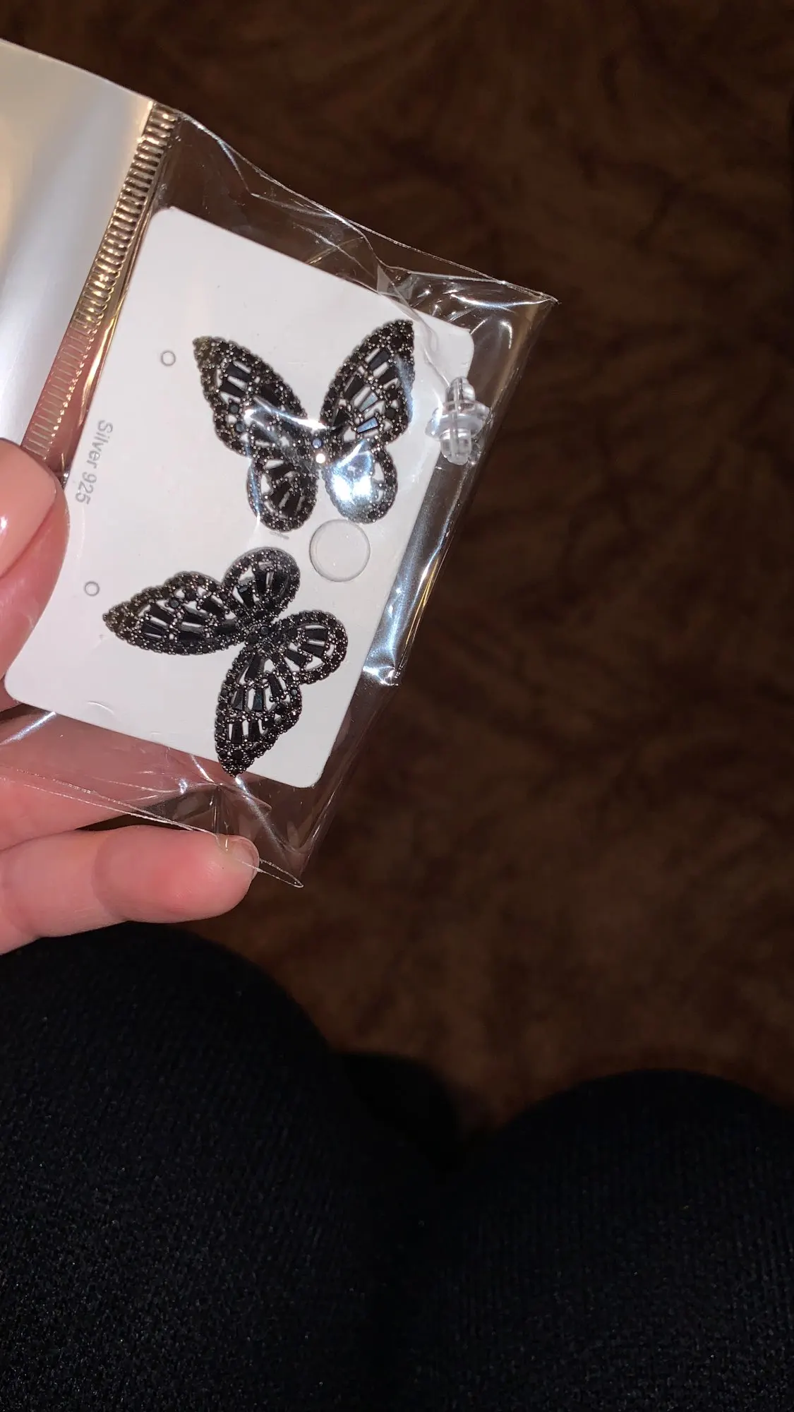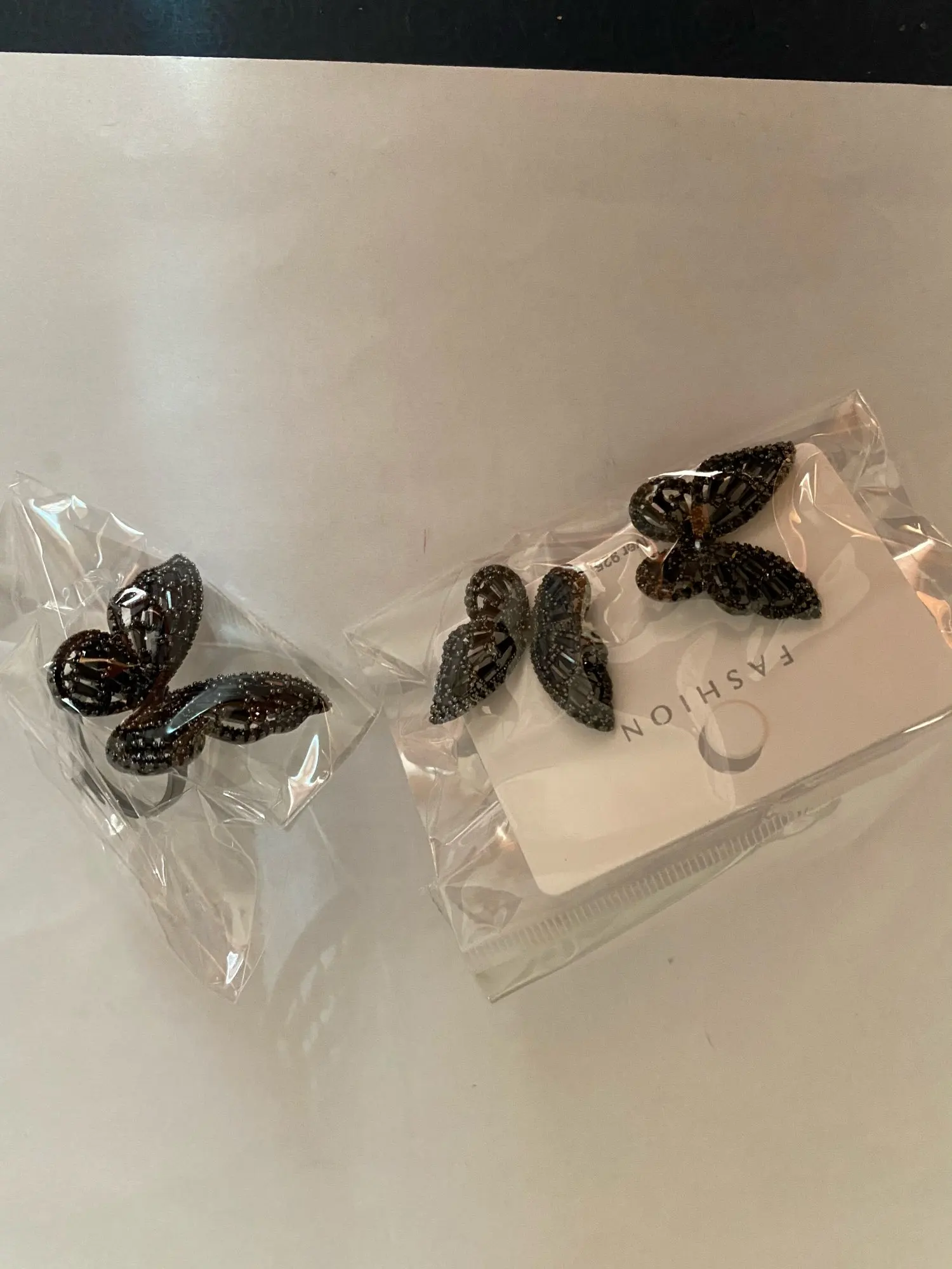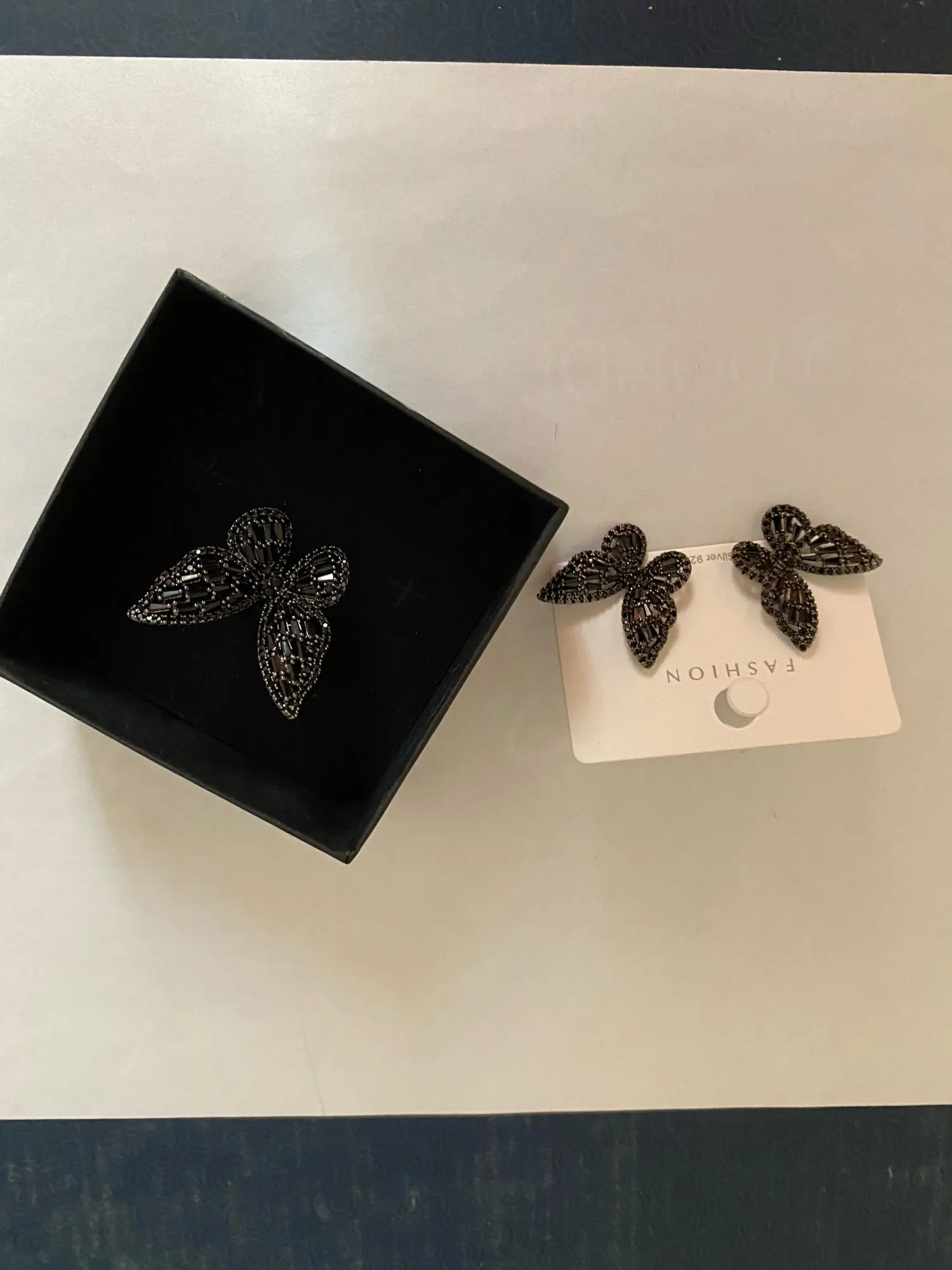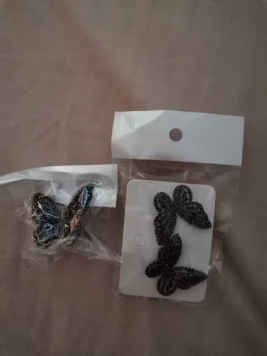 Отличный набор! Чёрное родирование,кольцо с регулируемым размером! Все стразы на месте, смотрятся, как чёрная шпинель! Очень изящные, ажурные, волшебные бабочки! Серьги - пусеты, доводчики силиконовые! Доставка быстрая! Спасибо!