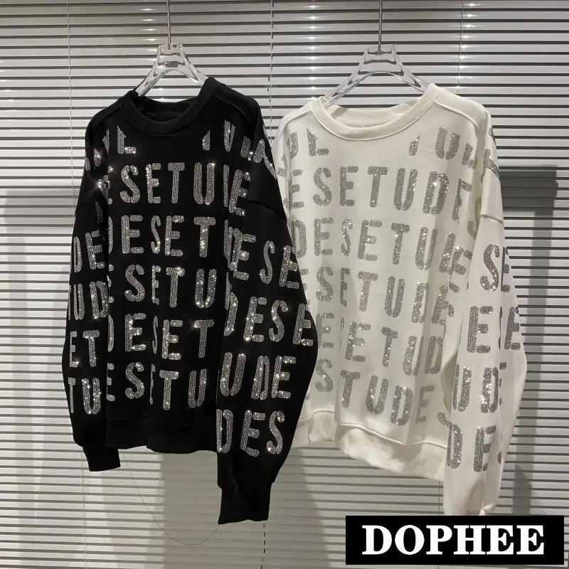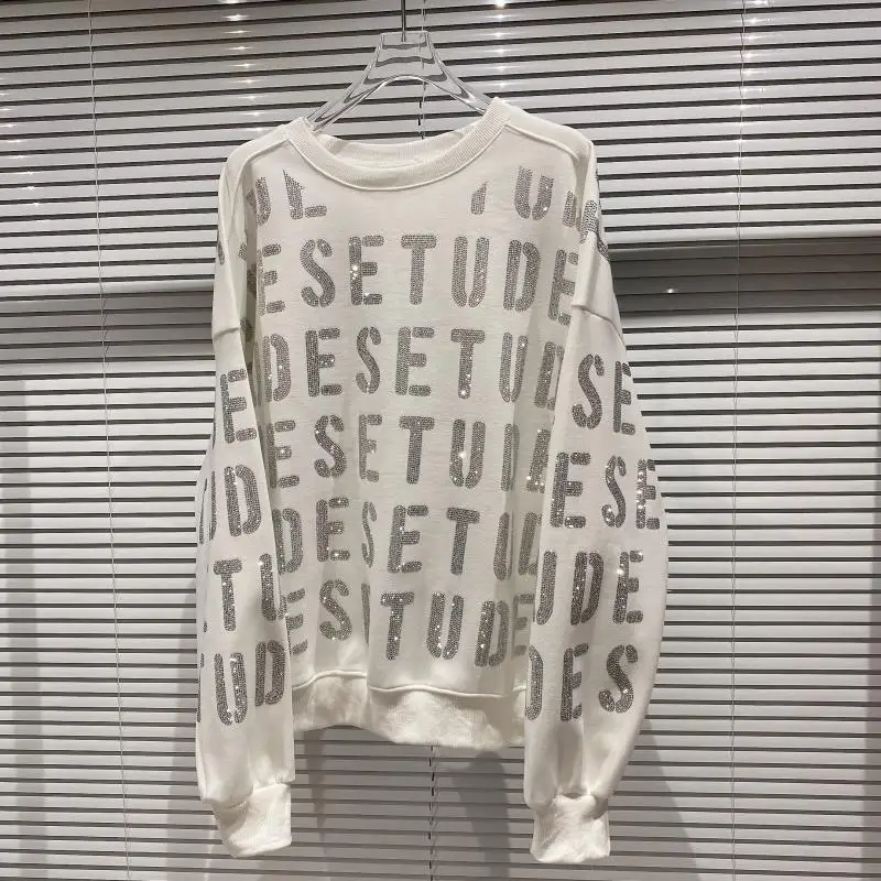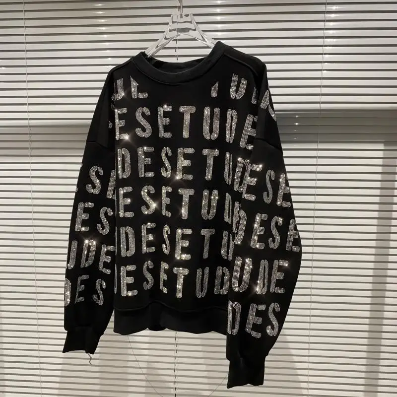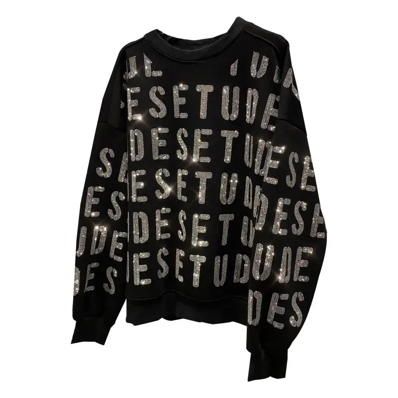 Новинка осени 2020, толстовки Стразы с надписью, свитшот с круглым вырезом и длинными рукавами, крутой пуловер, Женский Топ
