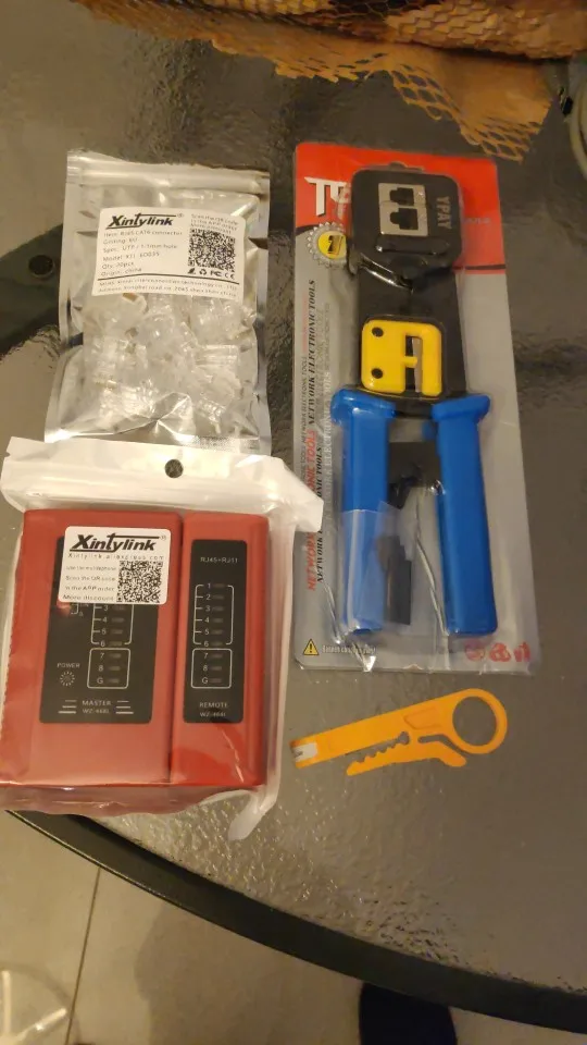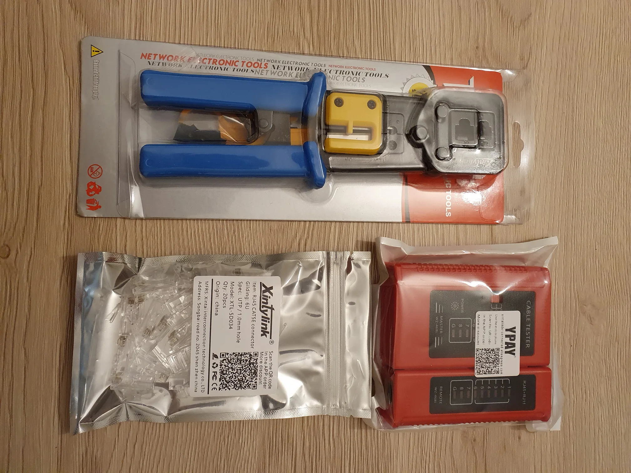 Кримпер пришёл, тестер сетевого кабеля работает.