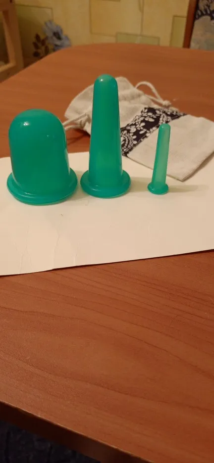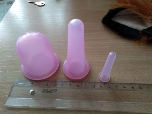 Баночки супер. Маленькие прям, имейте ввиду, самая маленькая как милиграмовый шприц. Жёсткие, думала они мягче. Но массаж делать ими удобно. Спасибо за товар!