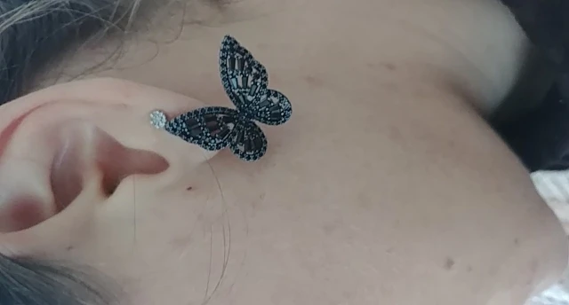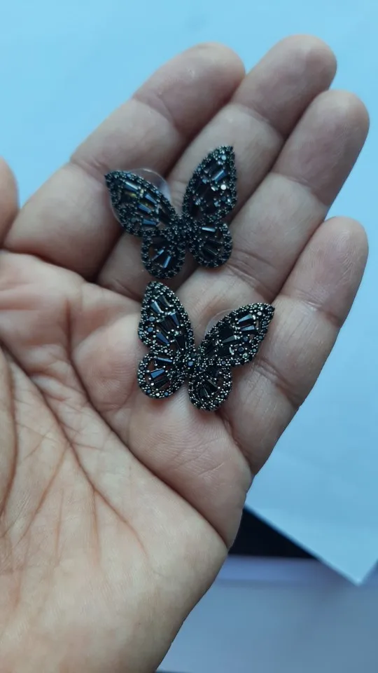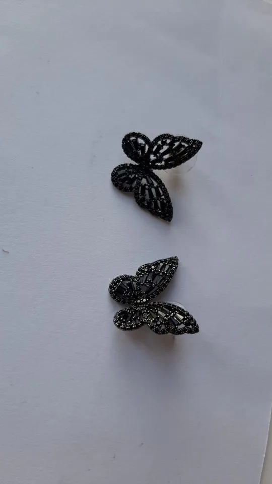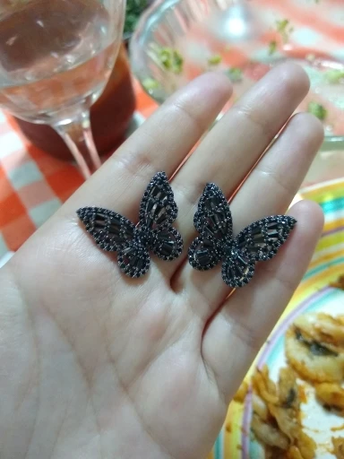 Бабочки сделаны качественно, все стразики на месте, гвоздики ровные, продавец положил дополнительные силиконовые заглушки... Померла, смотрятся очень красиво, вот только тяжеловаты, но носить буду, не на каждый день конечно. Спасибо...