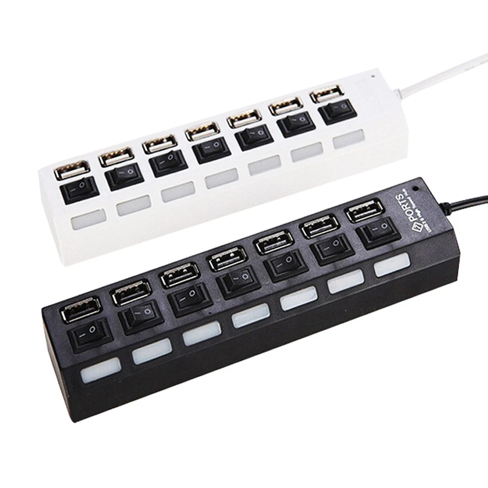 Концентратор для зарядки USB 2,0, 7 портов, светодиодный индикатор, адаптер USB 2,0 с переключателем 2020