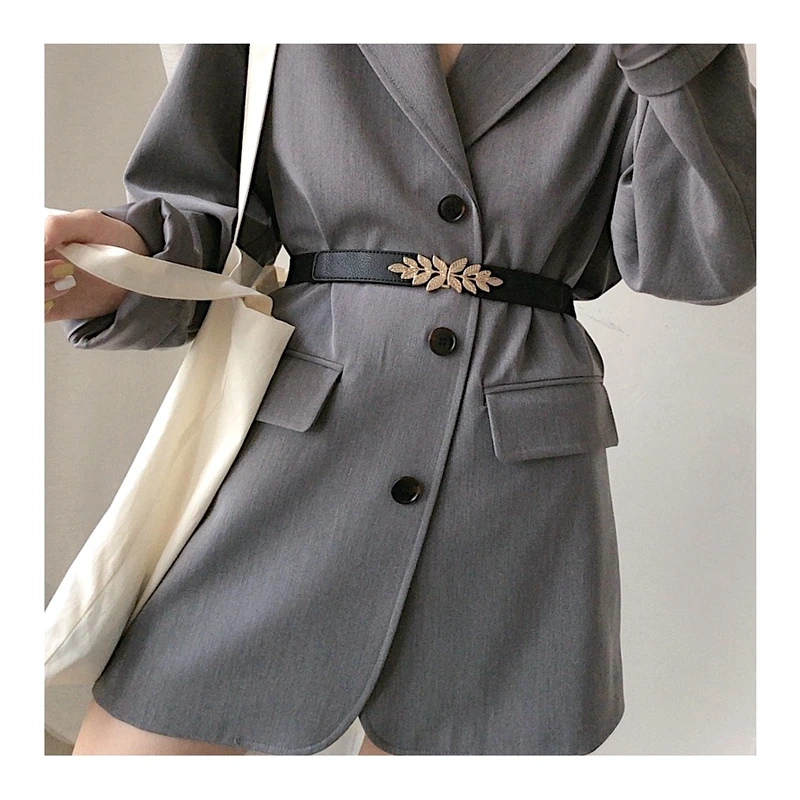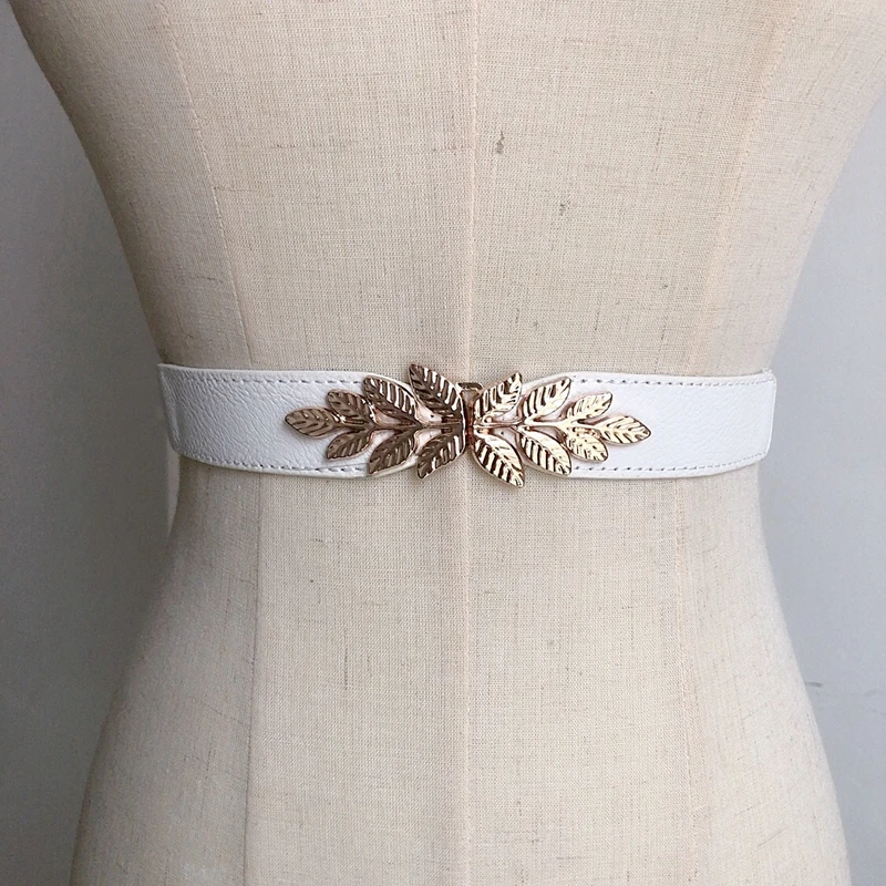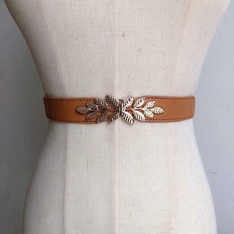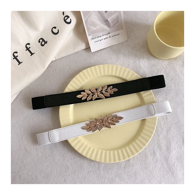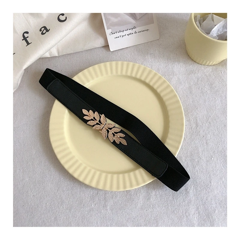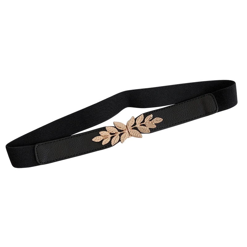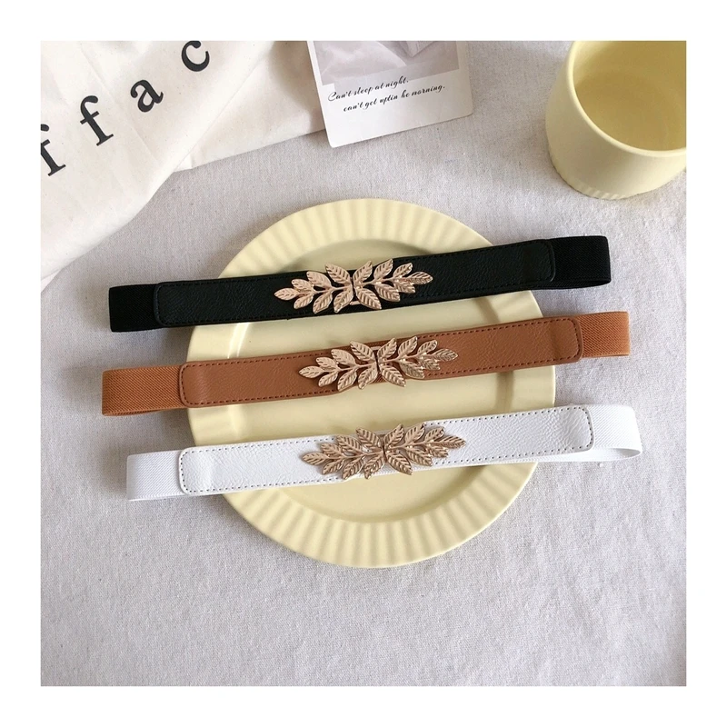 Ремень с листьями Женский, тонкий эластичный пояс из сплава под золото, с пряжкой, для платьев, джинсов, вечеринок, аксессуары для подарка