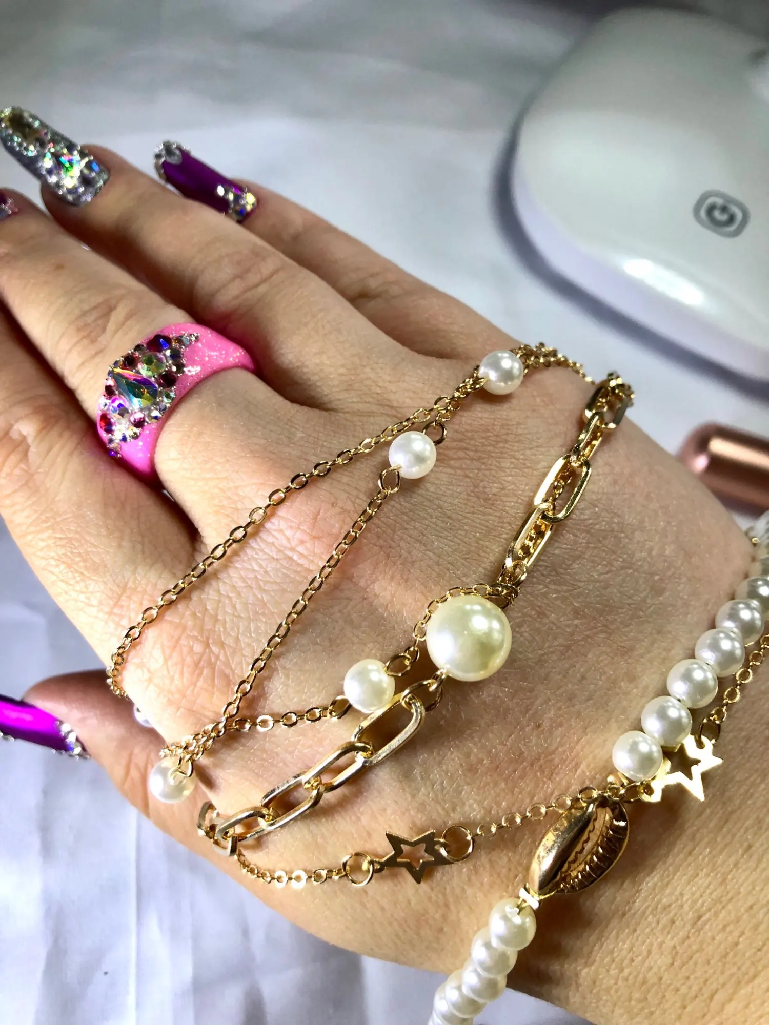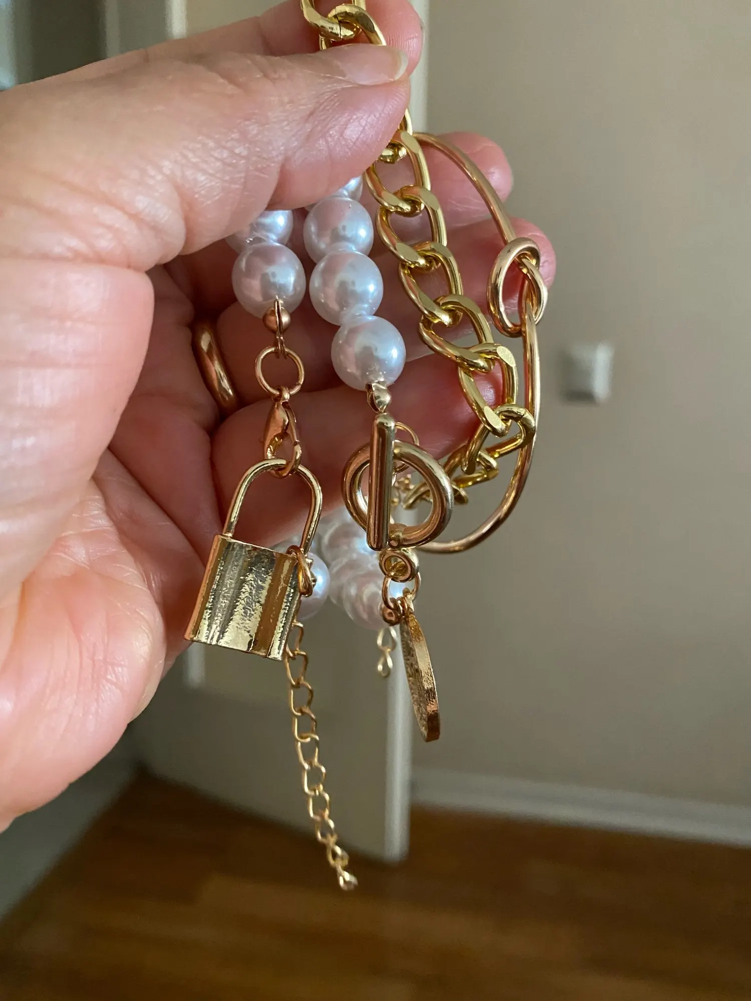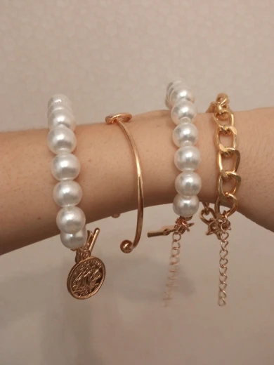 В принципе за такую то цену, неплохо. Цепь и браслетик с узлом зачётные. А два браслета с жемчужинами мне не понравились. Выглядят совсем простенько, дёшево (на фото они смотрятся гораздо лучше, чем в жизни). Их я наверное подарю дочке друзей)