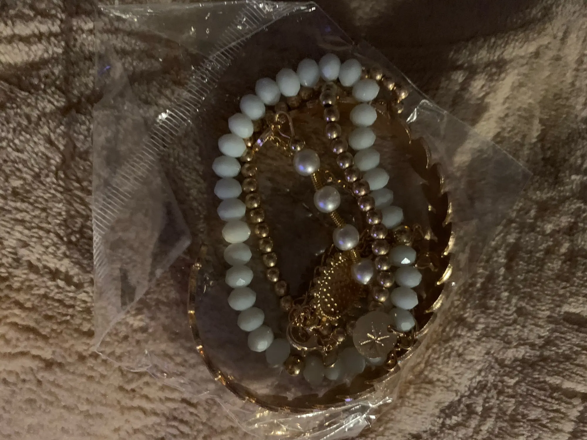Пришло быстро. Выглядит ок. Но, конечно, это пластик. Браслетик с монистой и интересной застежкой, из-за которого изначально заказывала, маленький! У остальных регулируется длина застёжки, а здесь нет и это не продуманно на производстве и обидно! 100% порвётся после пары носок.