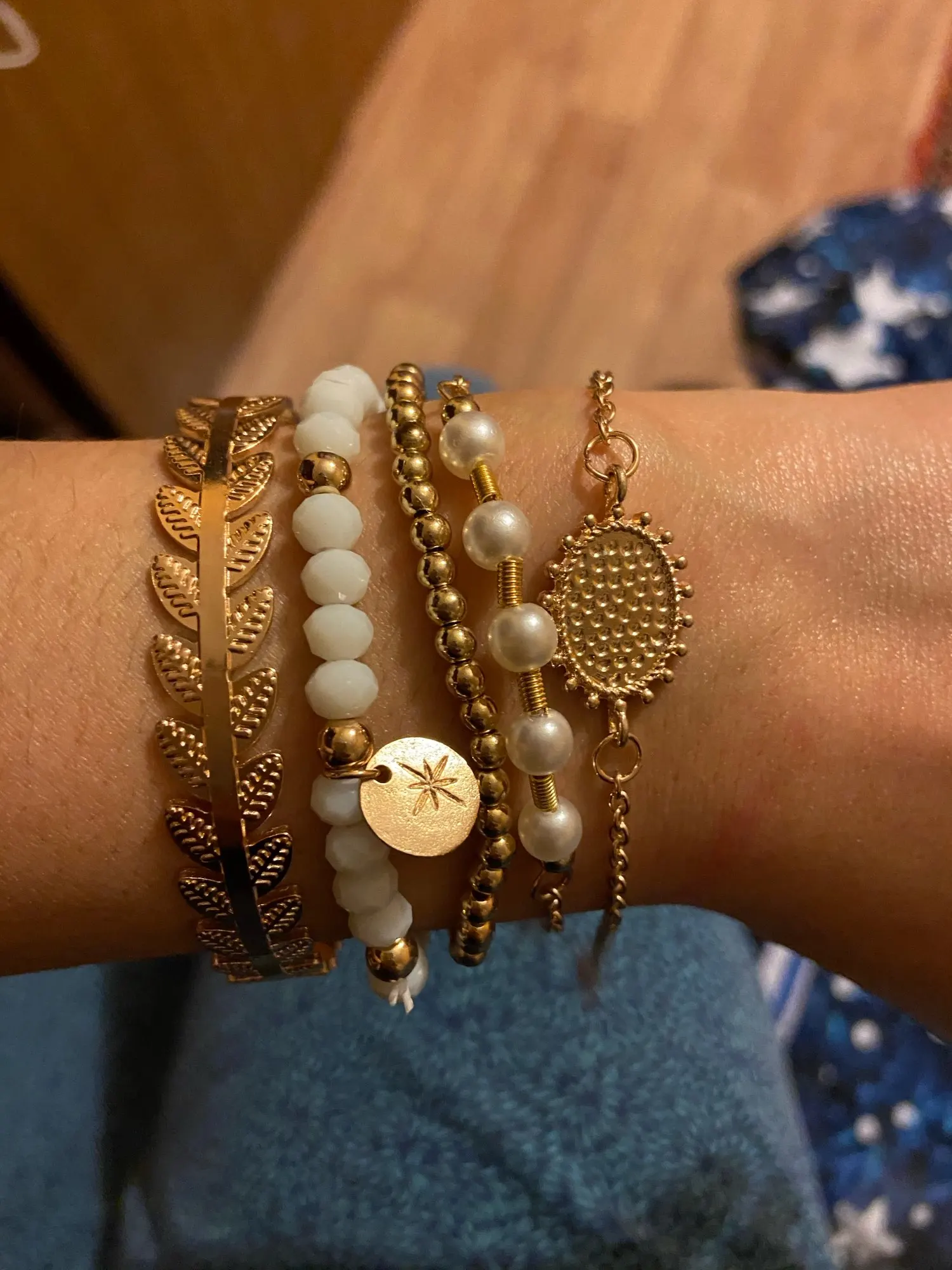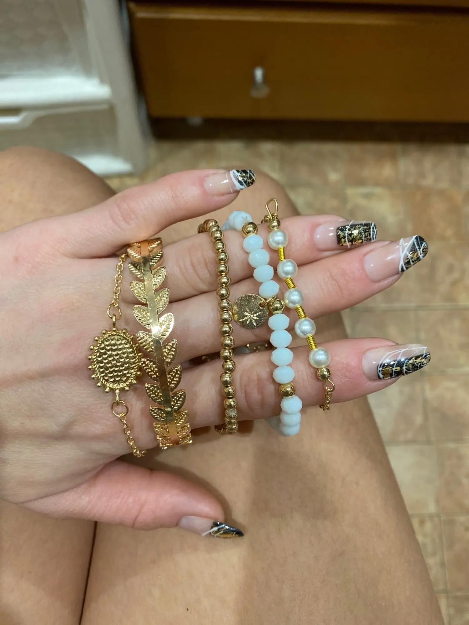 Браслеты качественные, не оставляют следов на коже. «Золото» не выглядит дёшево, смотрятся прилично. Довольна, рекомендую!