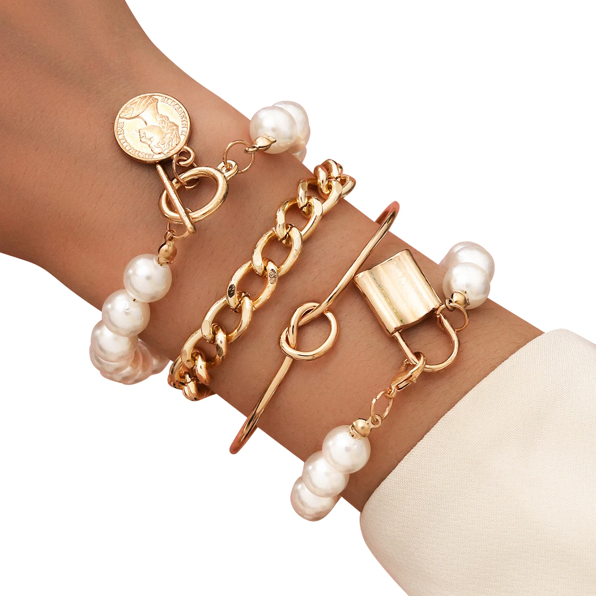 Браслеты KMVEXO женские, с искусственным жемчугом, в готическом стиле, с узелком, с цветком, 2020