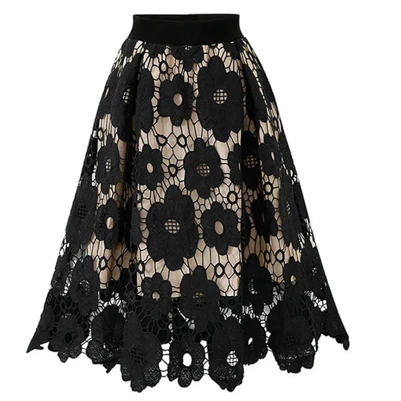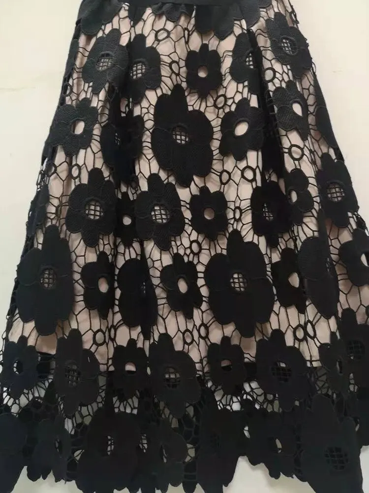 Юбка женская кружевная, с цветочной вышивкой, повседневная, черная, 2020
