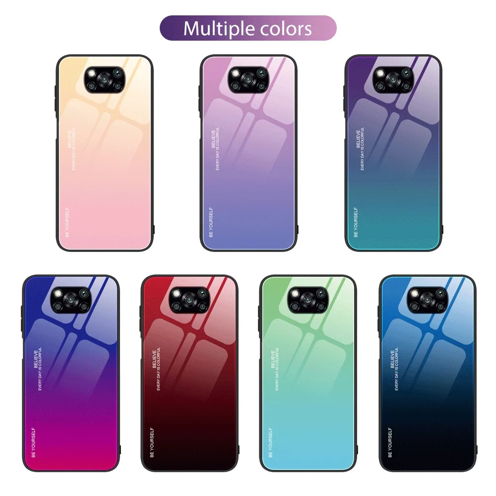 Чехол для Xiaomi Poco X3, чехол из закаленного стекла, градиентный цвет, защитный чехол для Xiaomi Poco X 3 Poco x 3, чехол