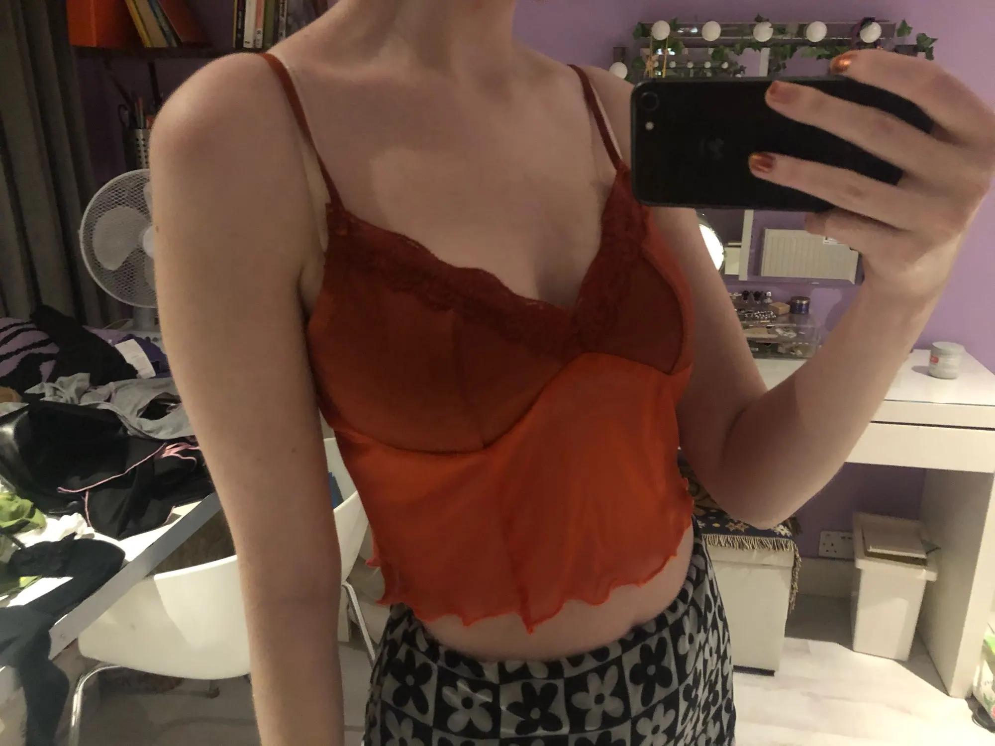 Абсолютно так восхитительно! Я тоже в восторге. У меня нет слишком большого количества оранжевых предметов в моем шкафу, но это просто так мило и уникально. Я носил мой с некоторыми большими грузовыми штанами и doc martens. Такой милый вид. И это очень удобно. Вызывающе летний топ, но я буду носить его в любое время года