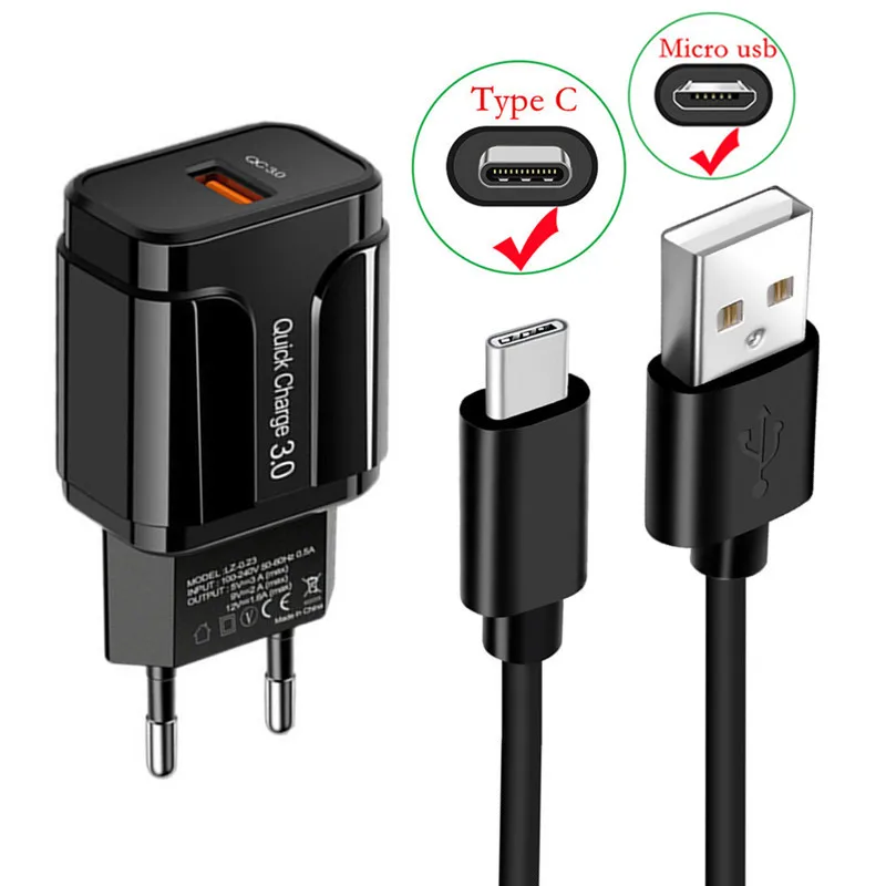 Адаптер для быстрой зарядки, зарядное устройство с Micro USB Type-C кабелем, 18 Вт, 3 А, для Samsung Galay S20 FE J3 J5 A7 A10 A11 A13 A22 A32 A71 M31S