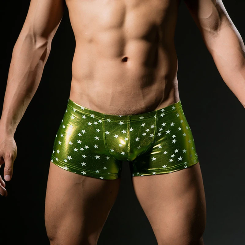 Майка мужская из искусственной кожи, пикантный жилет с блестящими звездами, без рукавов, боди для геев, Комплект трусов и боксеров, забавный жилет для вечерние