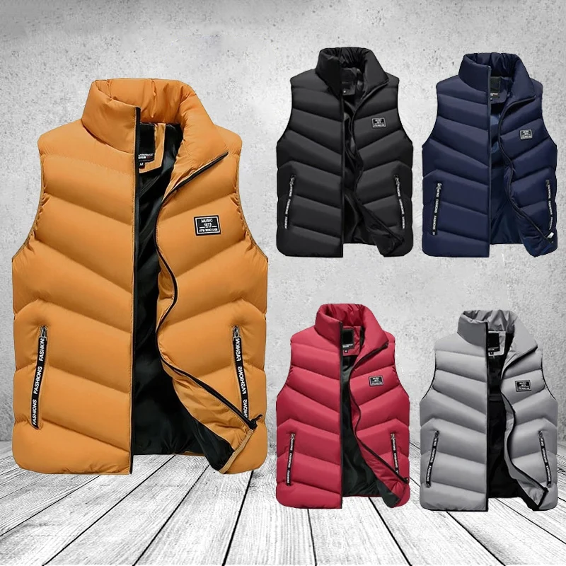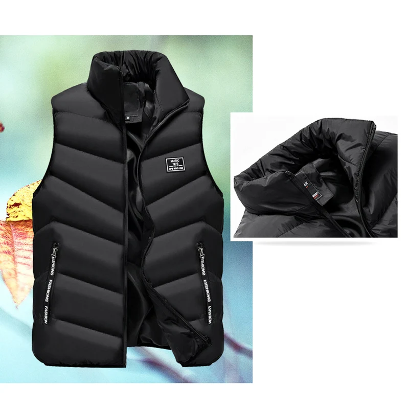 Новинка, мужской пуховой жилет на молнии с воротником-стойкой, мужская верхняя одежда, мужские жилеты без рукавов DOD886