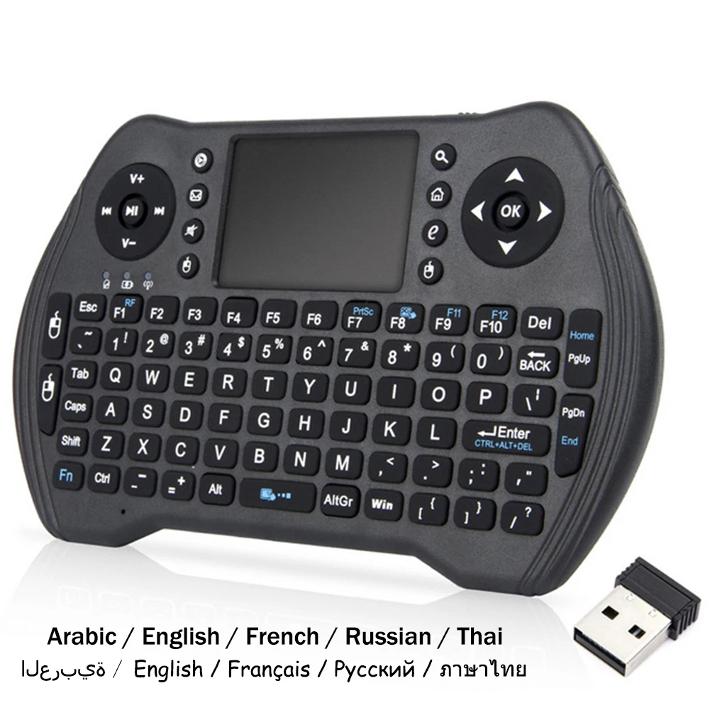 Характеристики: Большой тачпад, уникальная двойная левая и правая кнопки мыши, поддержка касания несколькими пальцами, более удобная работа. Регулируемая скорость мыши и две скорости. Игровая клавиатура размером с ладонь, простая в использовании. Два способа питания, вы можете свободно выбрать тот, который вам нравится. Название товара: Беспроводная Клавиатура Материал: АБС Рабочий диапазон: до 10 м Мощность передачи: + 5 дБ Максимальное рабочее напряжение: 3,7 в Рабочий ток: 8-30 мА Зарядный ток: <200 мА Ток сна: <15 мА Источник питания: для литиевого аккумулятора 300 мАч (входит в комплект)/2 аккумулятора AAA (не входят в комплект) (опционально) Особенности: Беспроводной, эргономичный дизайн, стабильная передача, простота использования Длина: 148 мм/5,83 дюйма (прибл.) Ширина: 100 мм/3,94 дюйма (прибл.) Толщина: 18 мм/0,71 дюйма (прибл.) Примечания: Из-за разницы в освещении и настройках экрана цвет изделия может немного отличаться от изображения. Возможны незначительные различия в размерах из-за различий в измерениях вручную. Посылка входит: 1 беспроводная клавиатура 1 х USB адаптер 1 x Кабель для передачи данных 1 х Руководство пользователя 1 х литиевая батарея