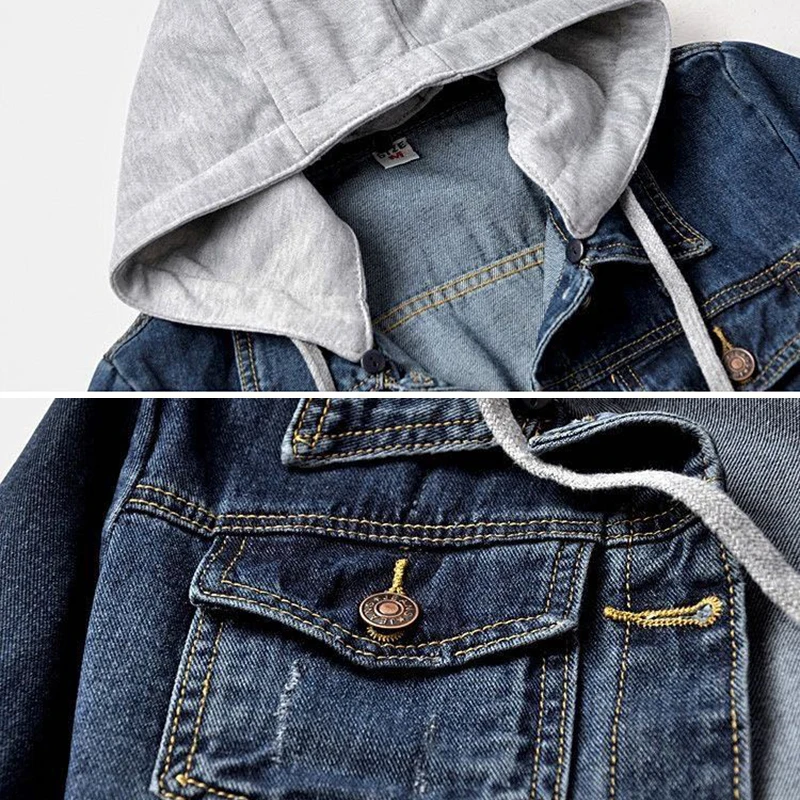 Женская джинсовая куртка, винтажная куртка с капюшоном, с пуговицам...
