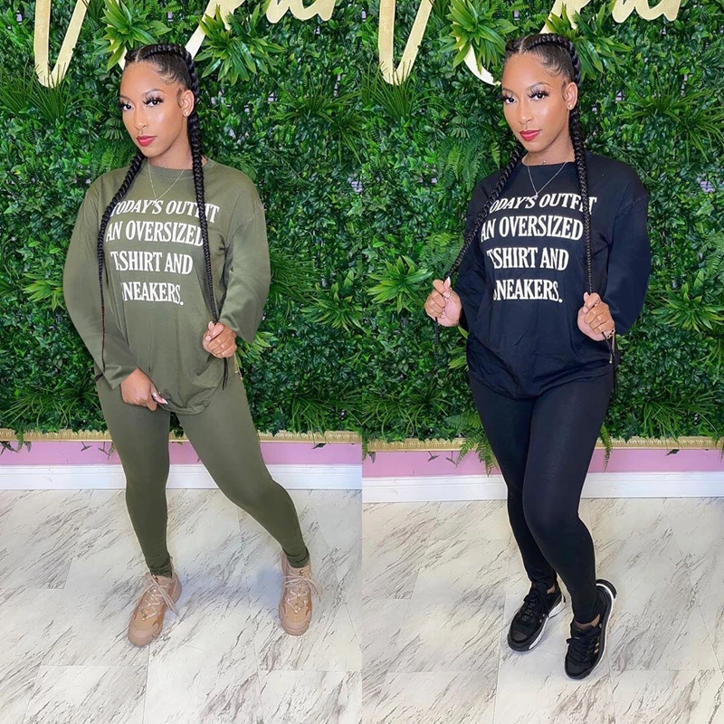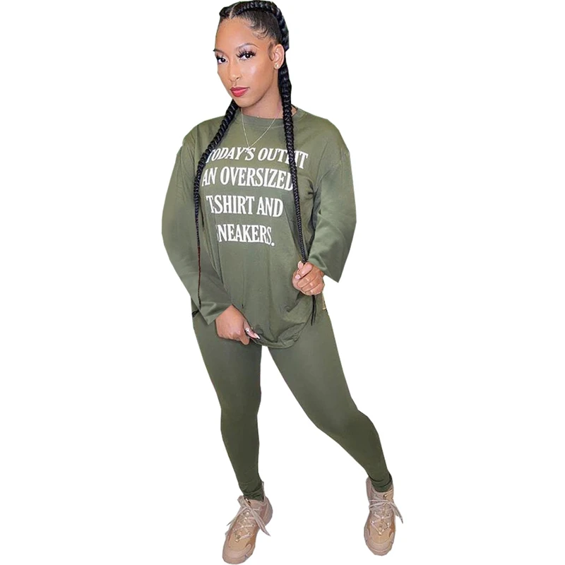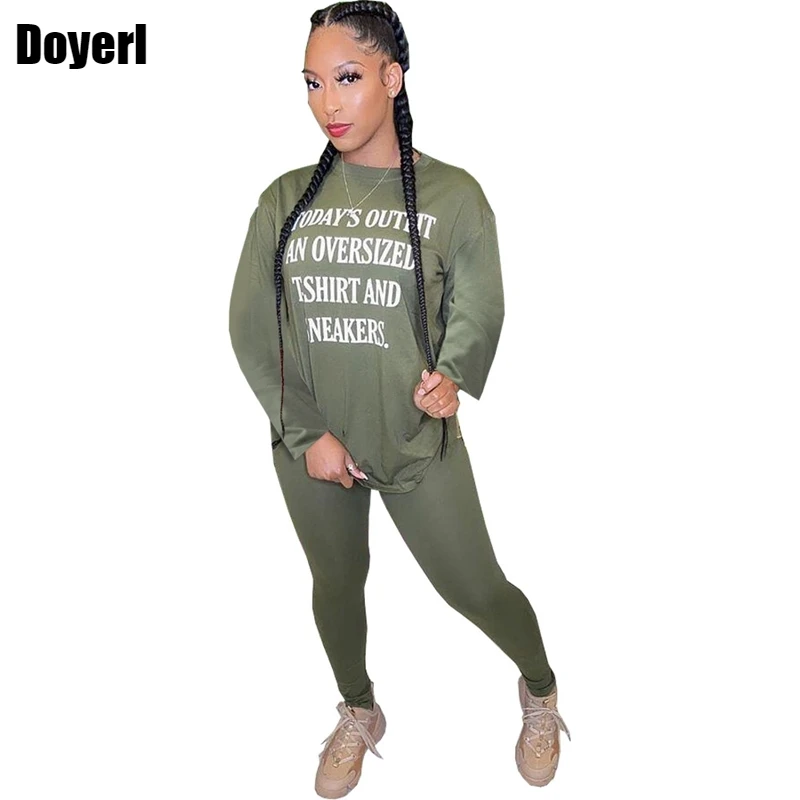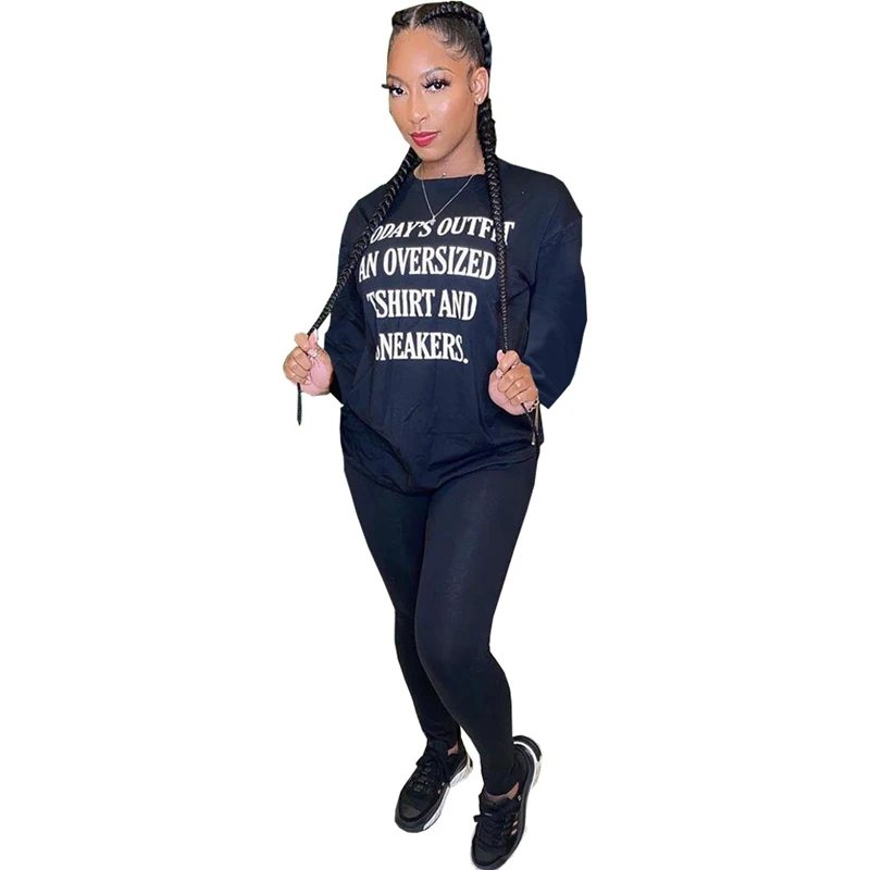 Повседневный Спортивный костюм с буквенным принтом, Женский комплект из 2 предметов, топ и штаны, размера плюс, спортивные костюмы, женский комплект для отдыха