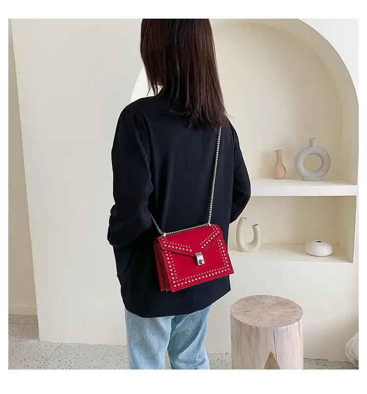 Женская маленькая сумка-мессенджер через плечо из скраб-кожи, с цепочкой и заклепками, Женская дорожная мини-сумка через плечо, 2022