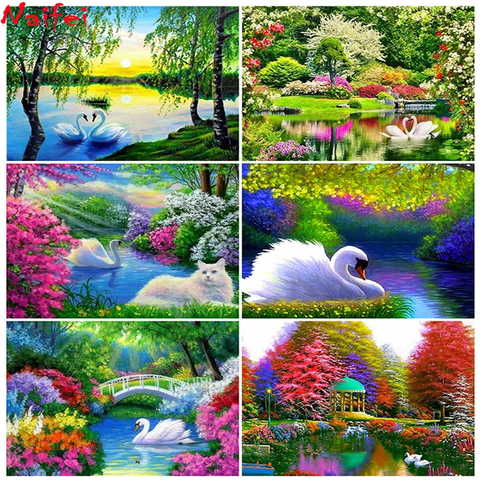 5D алмазная картина лебедь в озере DIY квадратная дрель полная Алмазная вышивка мозаика Красивая природа пейзаж украшение искусство
