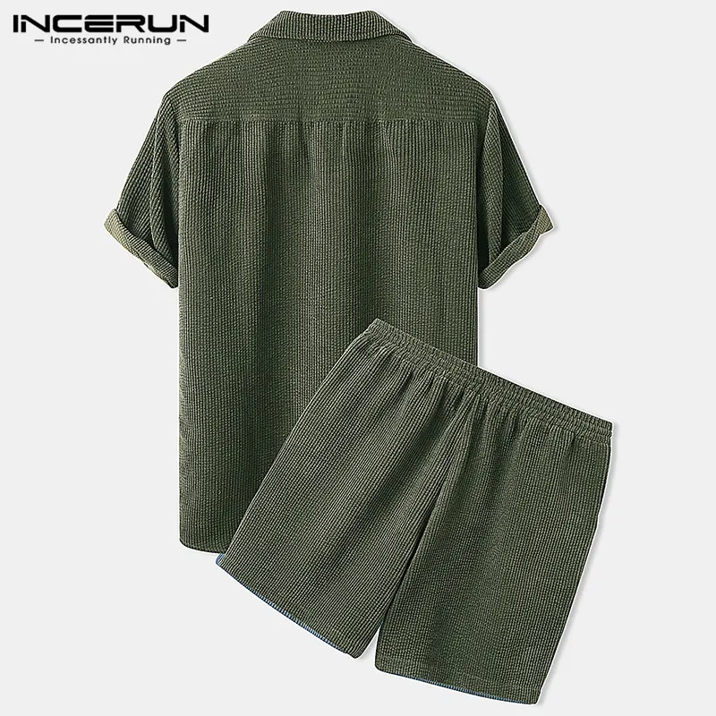 Мужские вельветовые комплекты INCERUN, однотонные рубашки и шорты с...