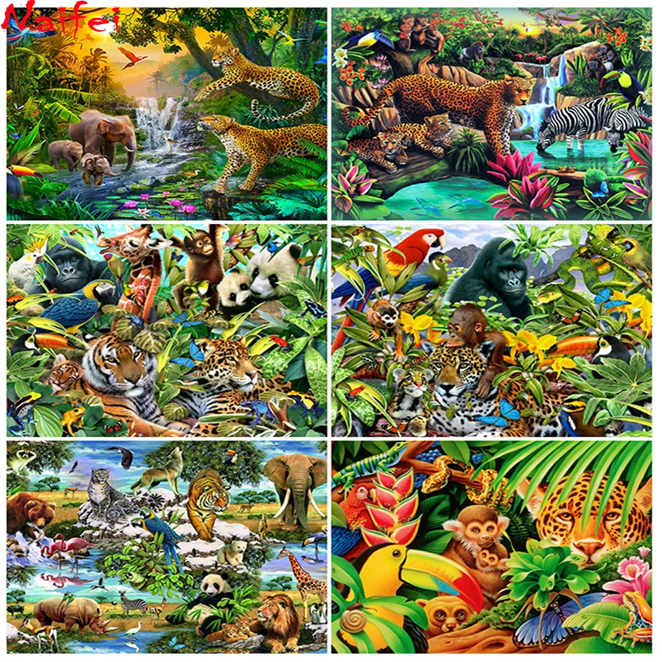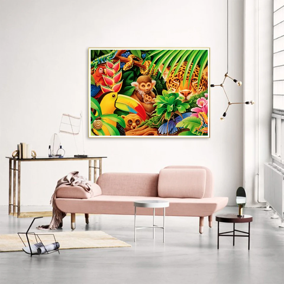 DIY diamond embroidery jungle leopard landscape diamond painting 5D square round mosaic birds picture of rhinestone living decor