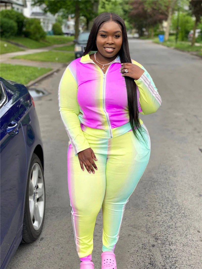Размера плюс одежда, Женский L-5XL комплект из 2 предметов с градие...
