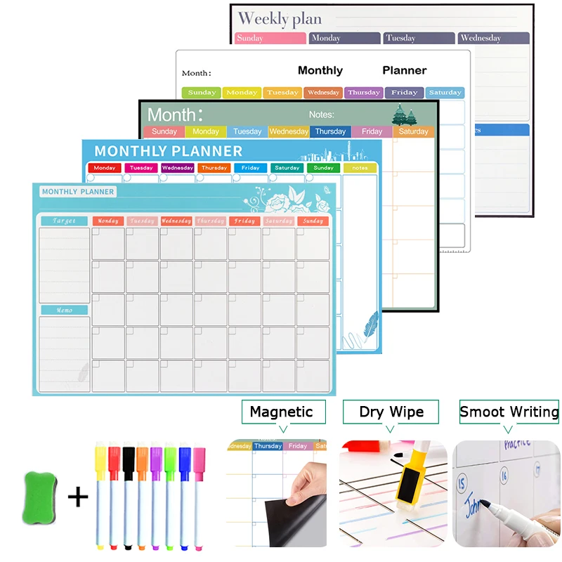 Сухой доска магнитно-еженедельный ежемесячный планировщик календарь...