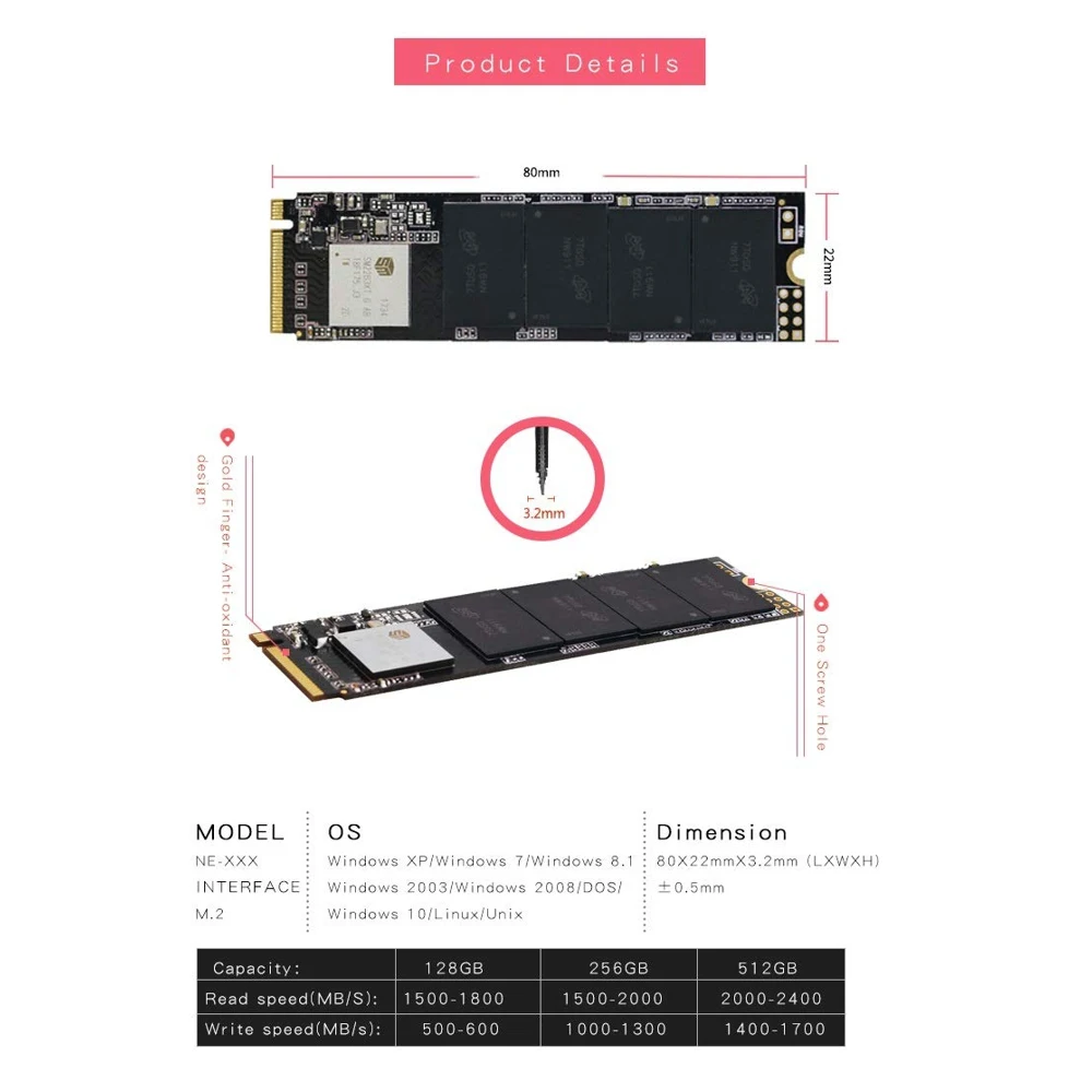 SSD накопитель KingSpec NE, 2280, M.2, NVMe