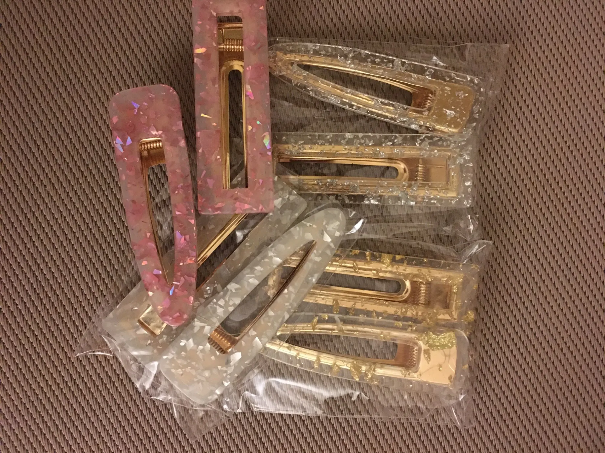 Заколки пришли быстро. Соответствуют описанию и фотографиям. Только пришли не на картонке, как на фото, а в обычном пакетике