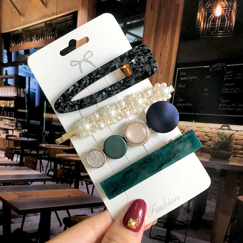 Заколки для волос женские, акриловые, с жемчужинами, 1 комплект