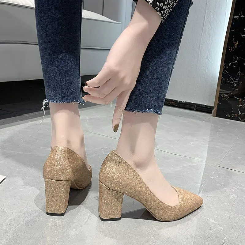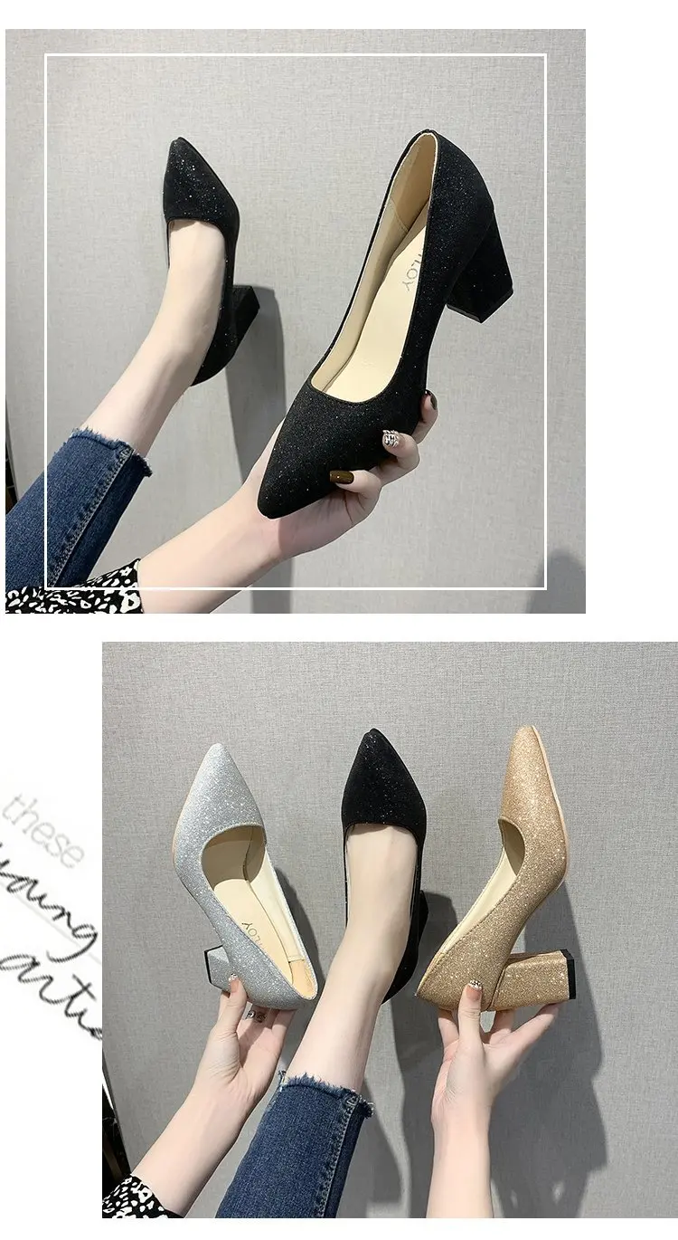 Туфли-лодочки женские с острым носком, высокий квадратный каблук, п...