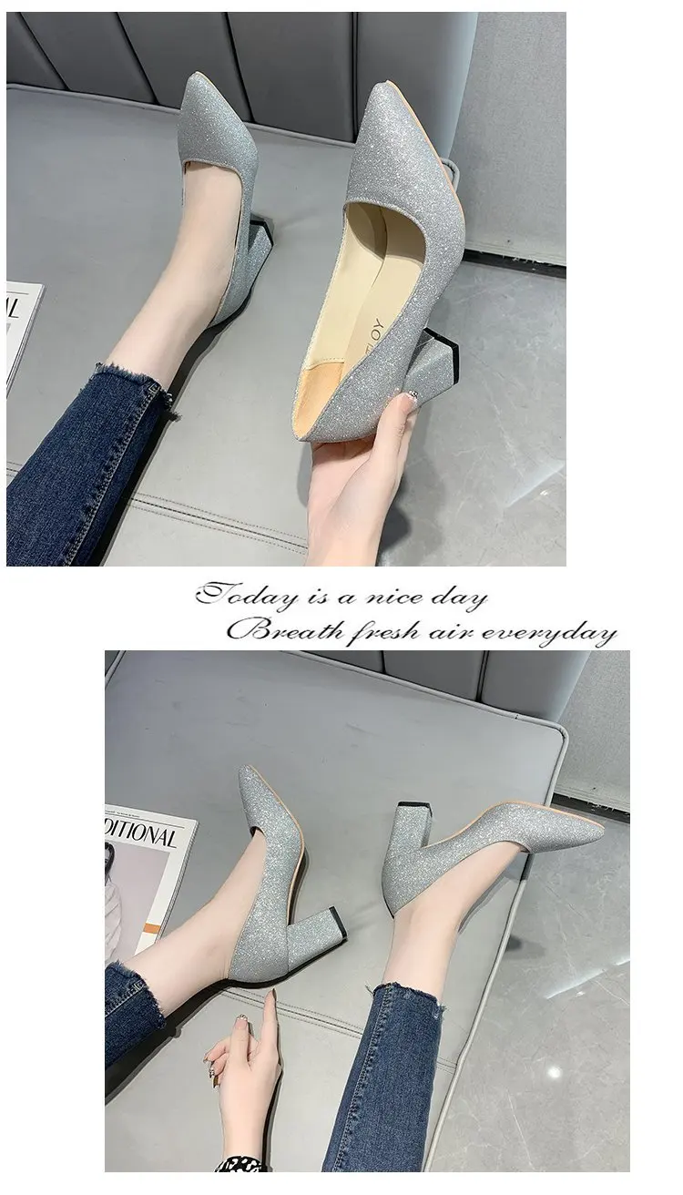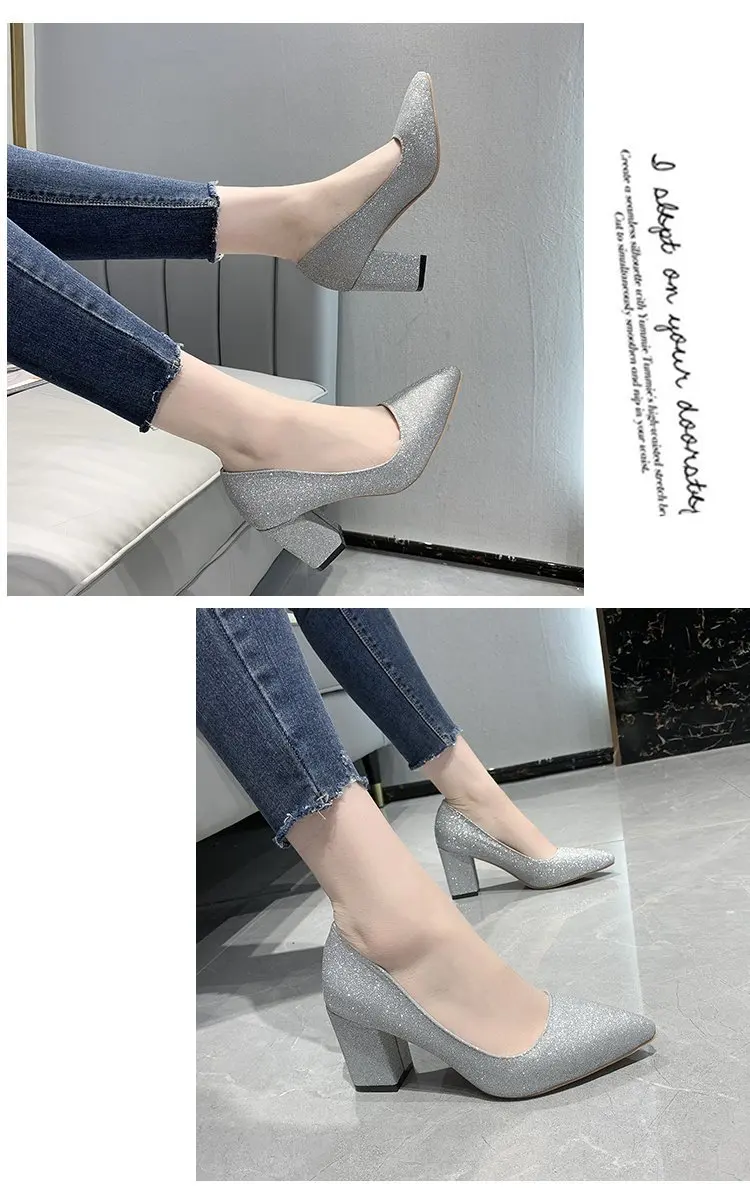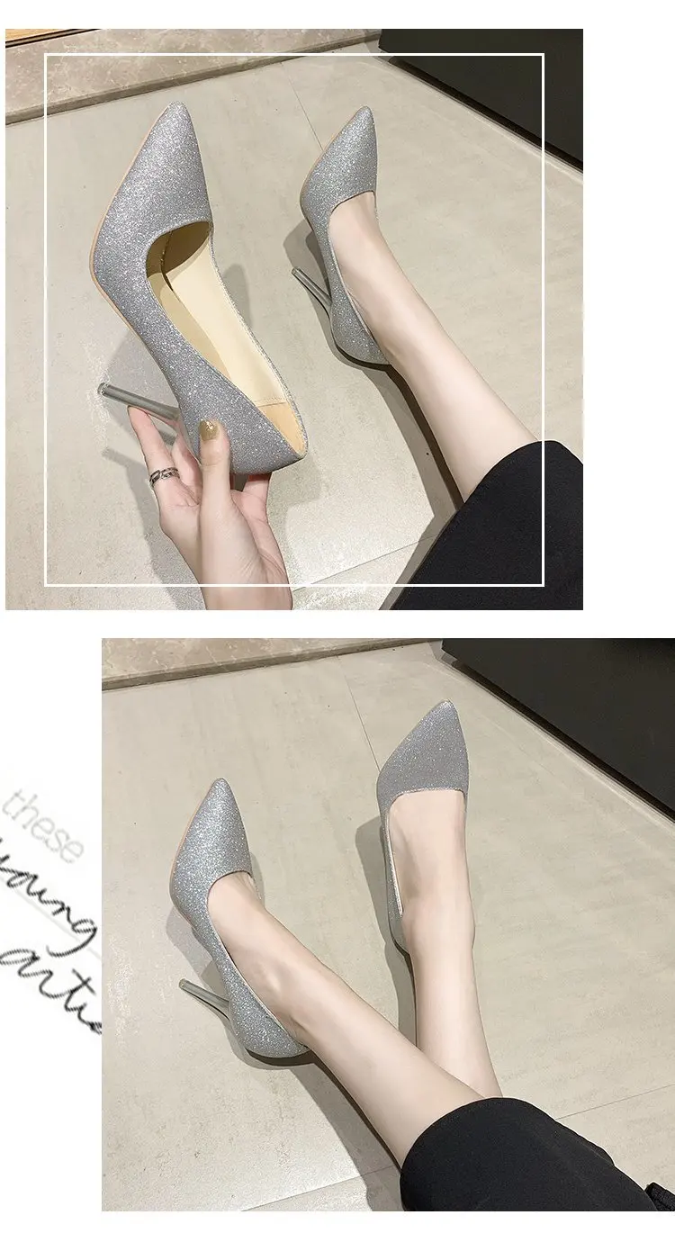 Женские туфли-лодочки на высоком каблуке, серебристые туфли-лодочки...
