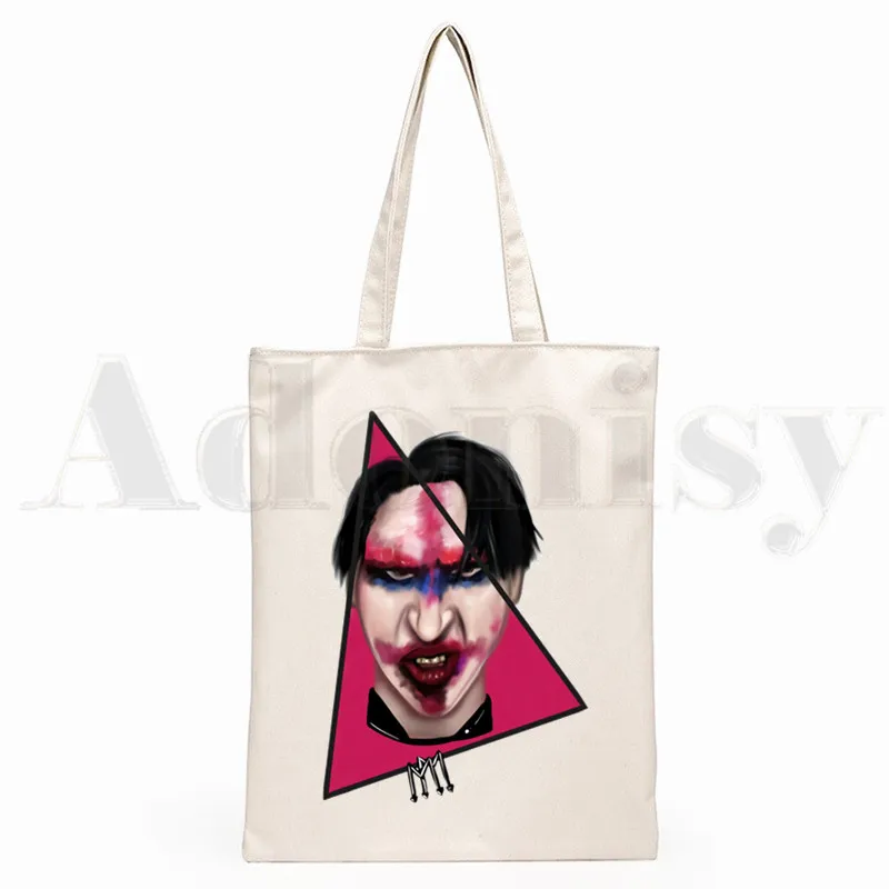 Мэрилин Мэнсон промышленный металл панк Рок Графический мультфильм печать сумки для покупок Девушки Мода Повседневная Pacakge сумка