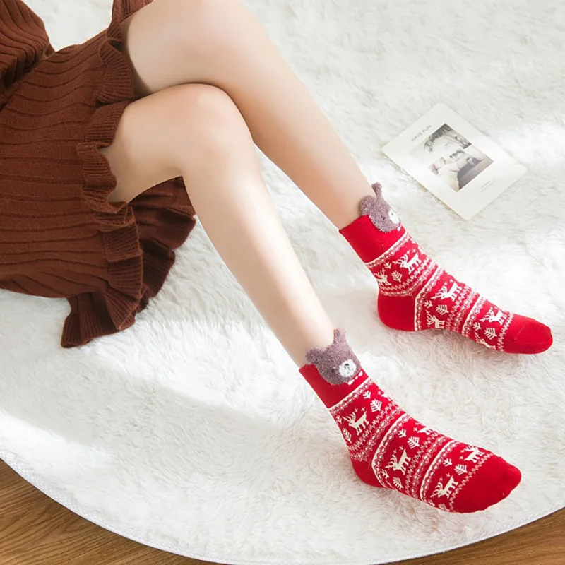 Дышащие осенне-зимние Новогодние рождественские носки 2021 красные носки средней длины с украшением из мультфильмов Рождественские Носки с рисунком