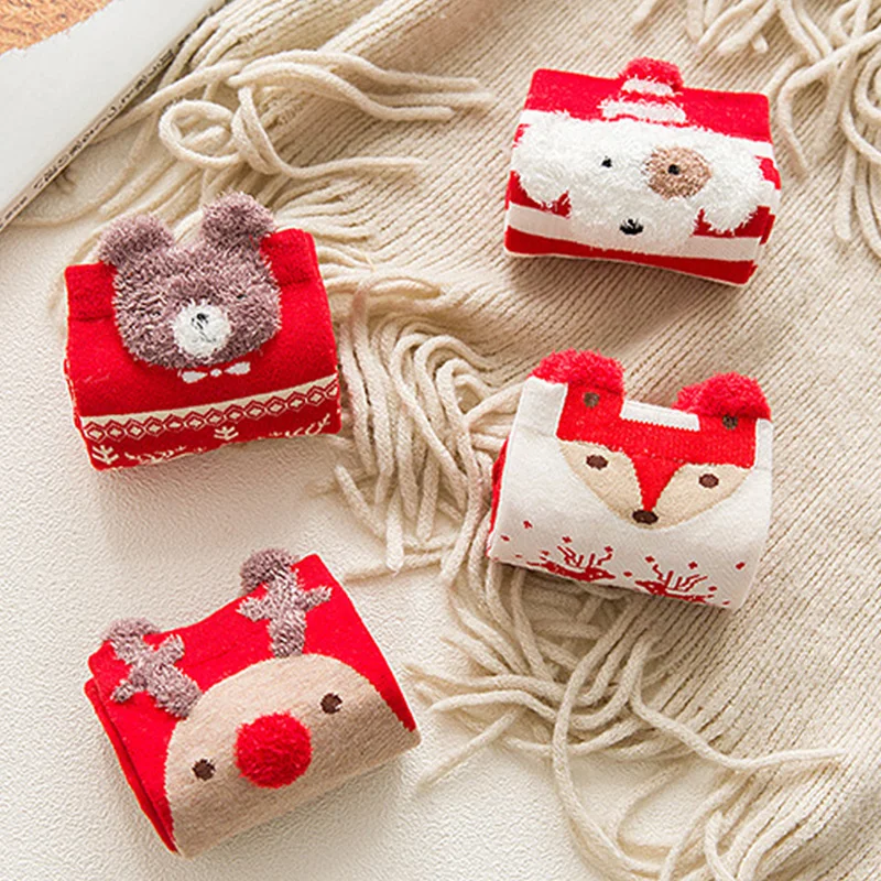 Осенне-зимние носки Санта-Клауса с объемным рисунком.