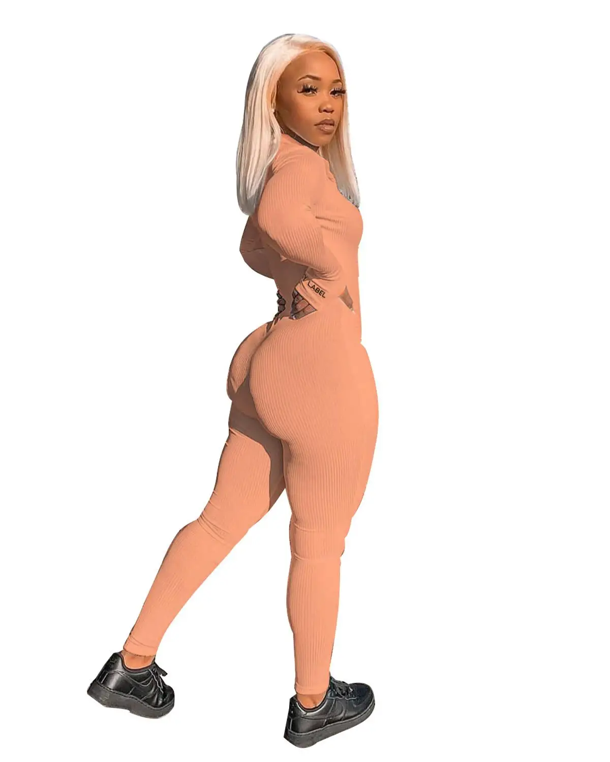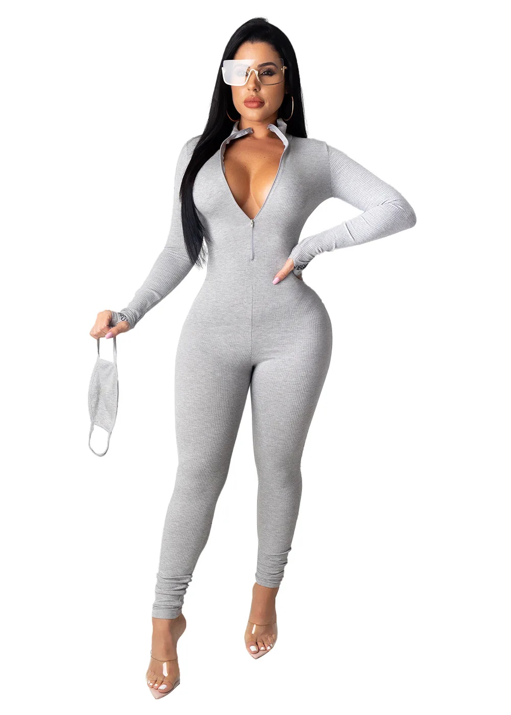 Женский комбинезон в рубчик JRRY, повседневный Облегающий комбинезон с высоким воротником и надписями на молнии, уличная одежда с приподнятыми линиями