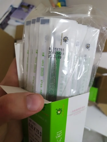 Идеальный прибыл за 15 дней. Хорошо обернутая и прочная картонная упаковка. Продукт такой же, как на фото. 50 отдельных сумок. В каждой из них 10 игл с руководством. Я куплю снова