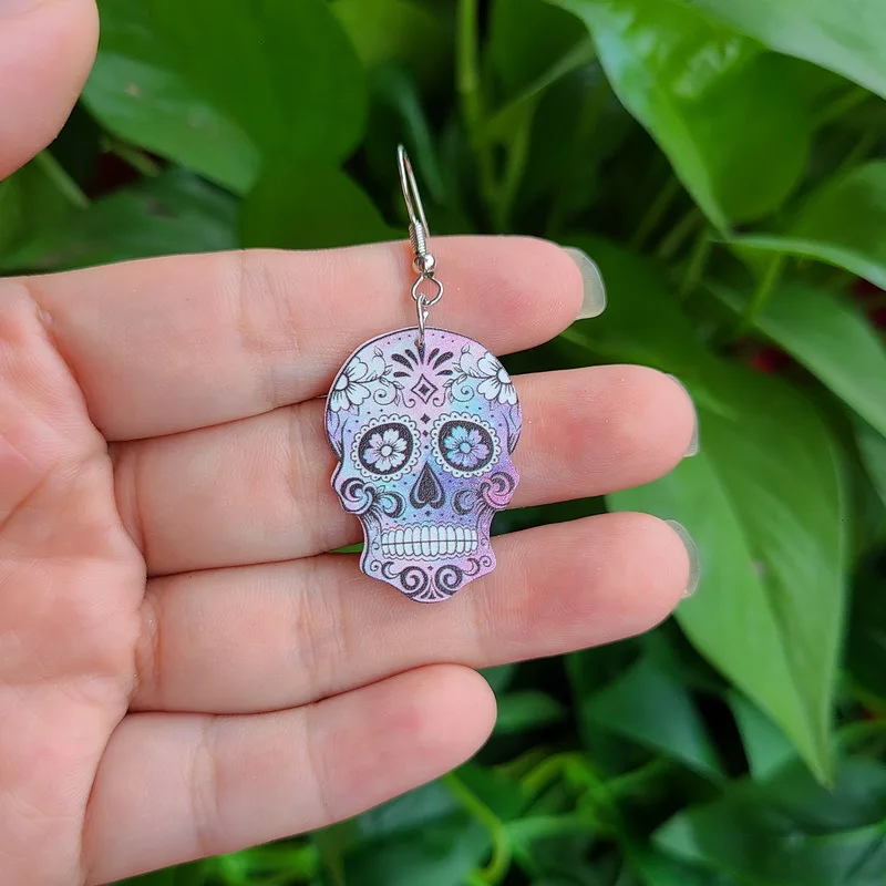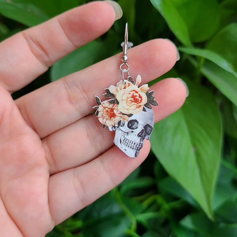 Женские Висячие серьги в стиле панк с цветком и черепом, акриловые серьги в стиле ретро на Хеллоуин, модные яркие серьги со злой головой, ювелирные изделия