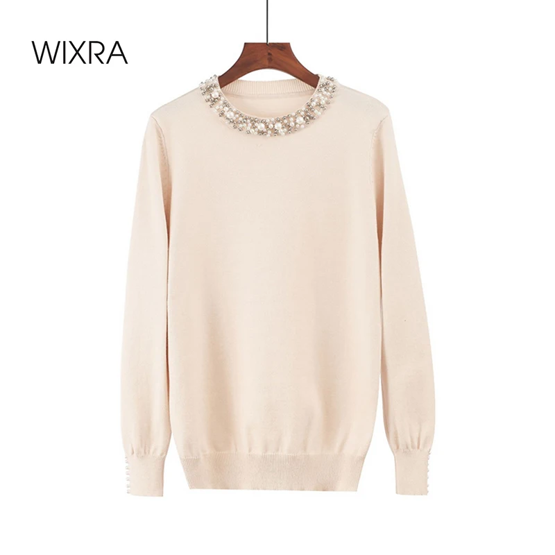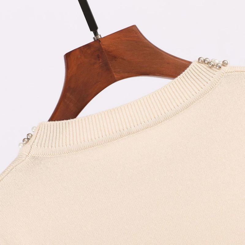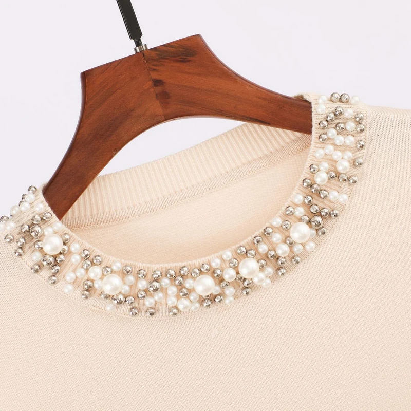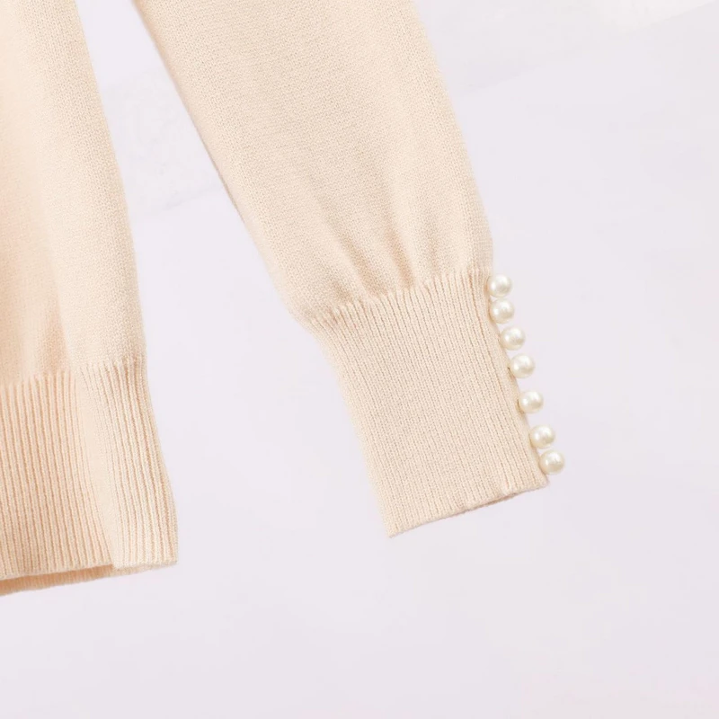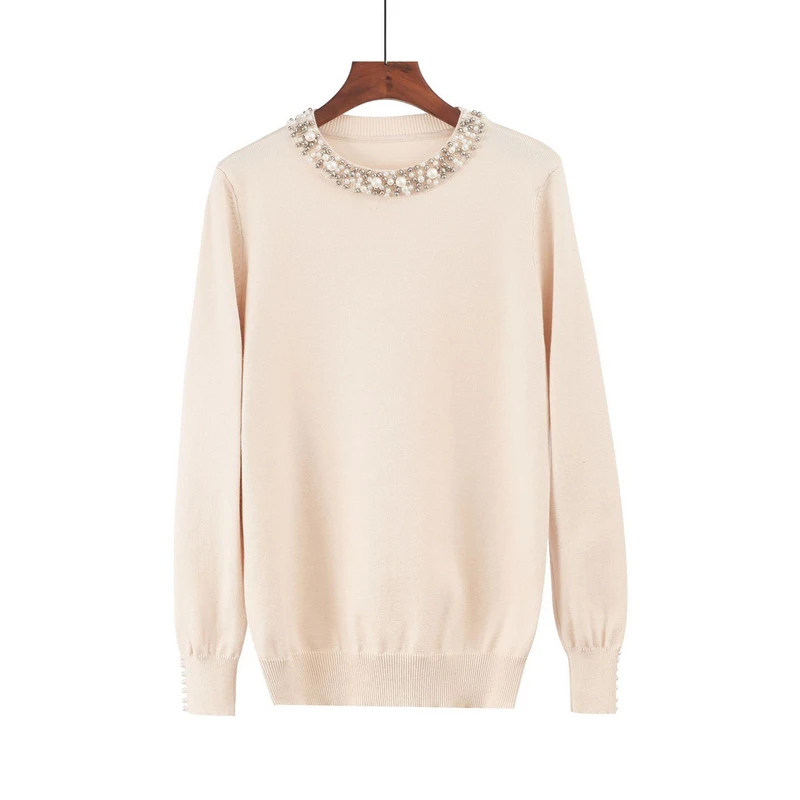 Свитер женский трикотажный с жемчужинами и длинными рукавами на осеньзиму
