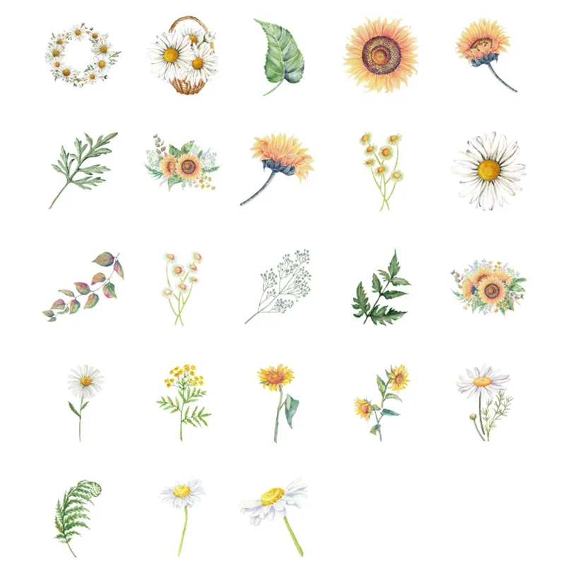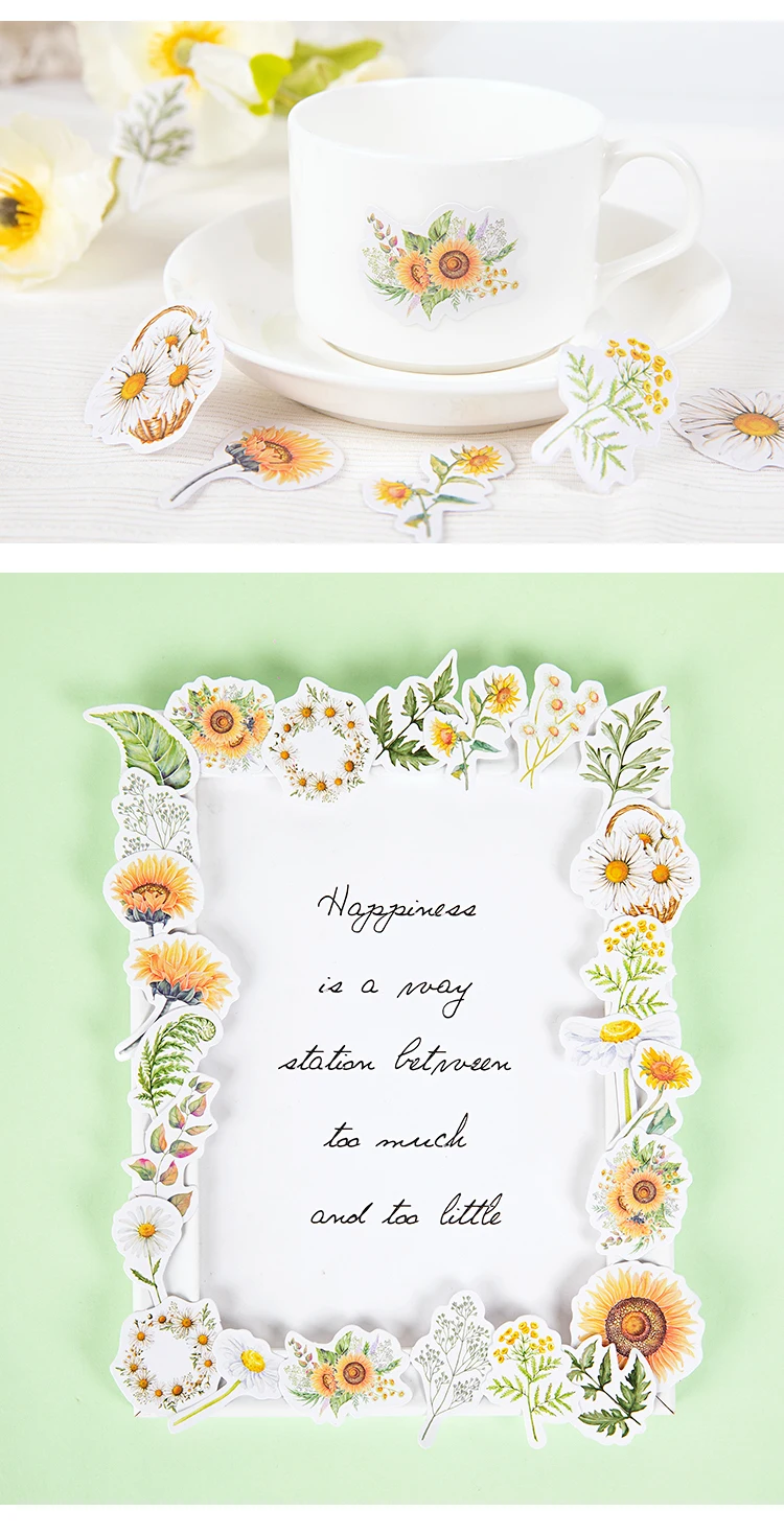 Маргаритки И Подсолнухи канцелярские наклейки Цветочные декоративные бумажные наклейки Kawaii ярлыки для растений DIY ежедневные планировщик для скрапбукинга