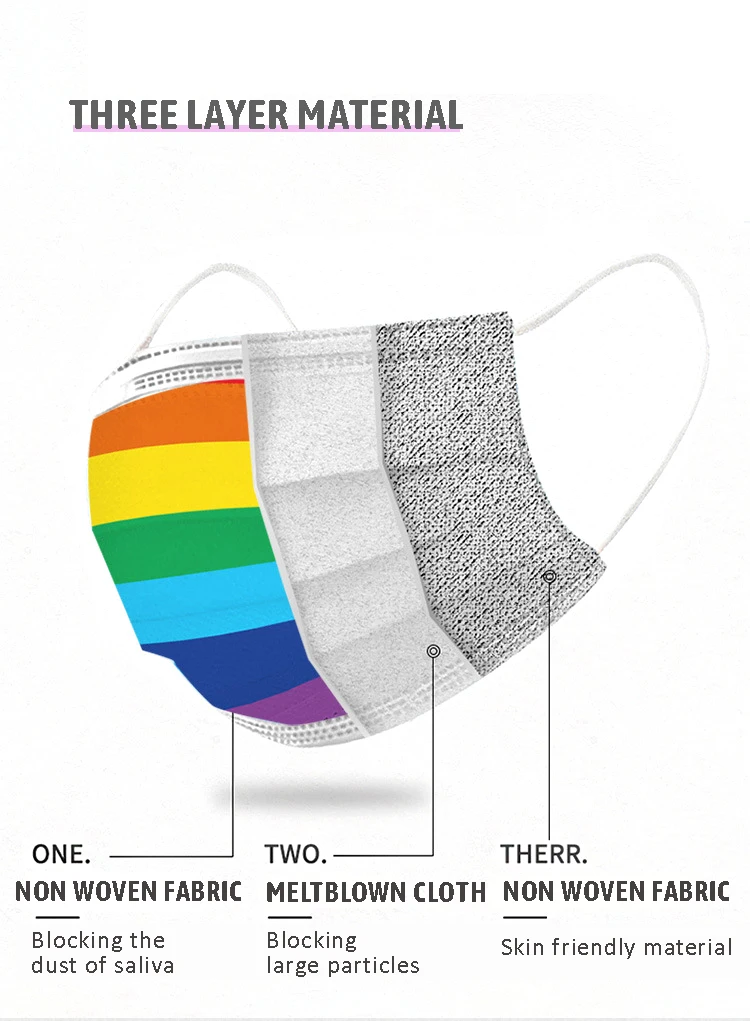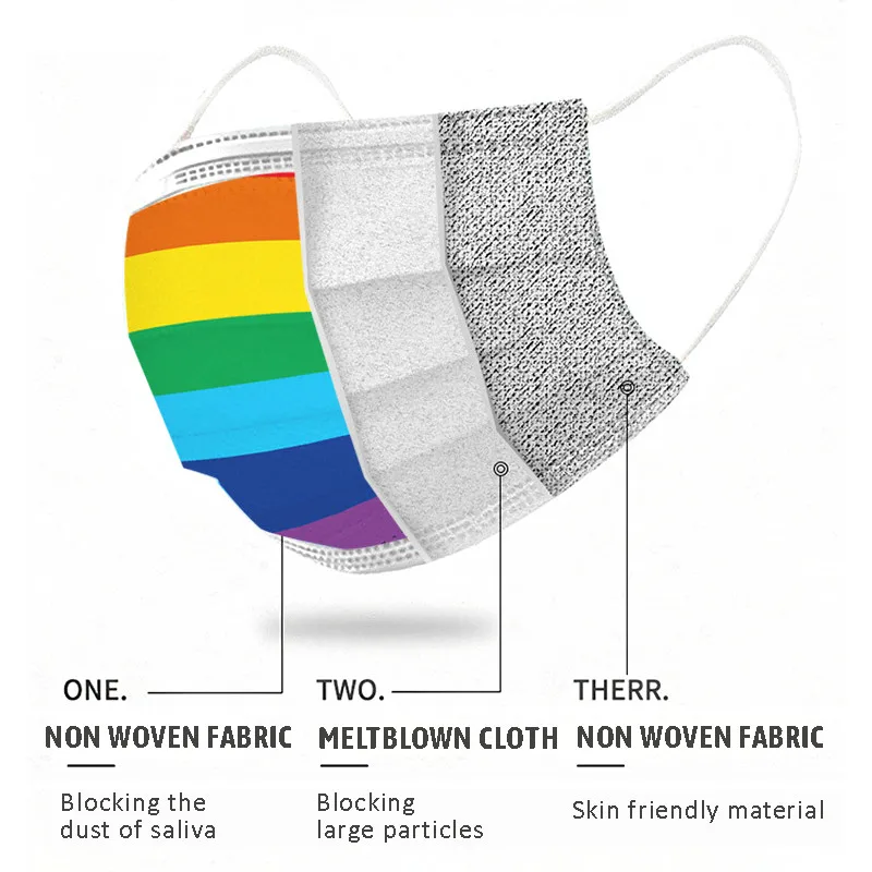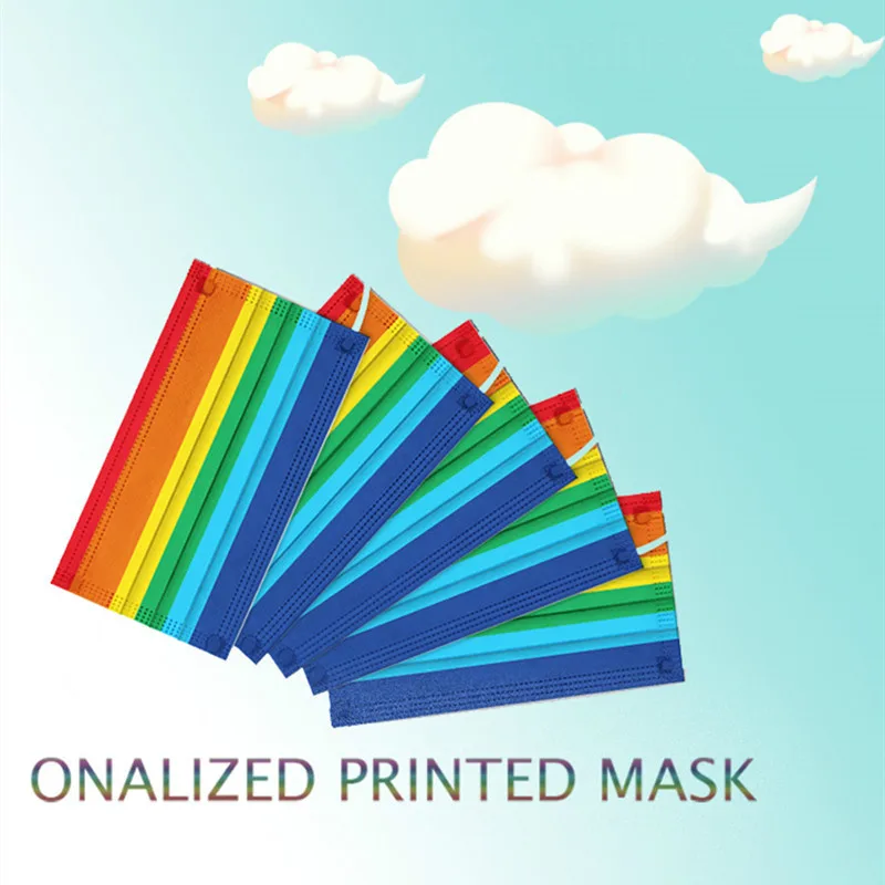 10pcs100pcs200pcs одноразовая маска с принтом радуги, 3-слойная Нетканая пыле дышащий ухо для Цвет красная маска для взрослых