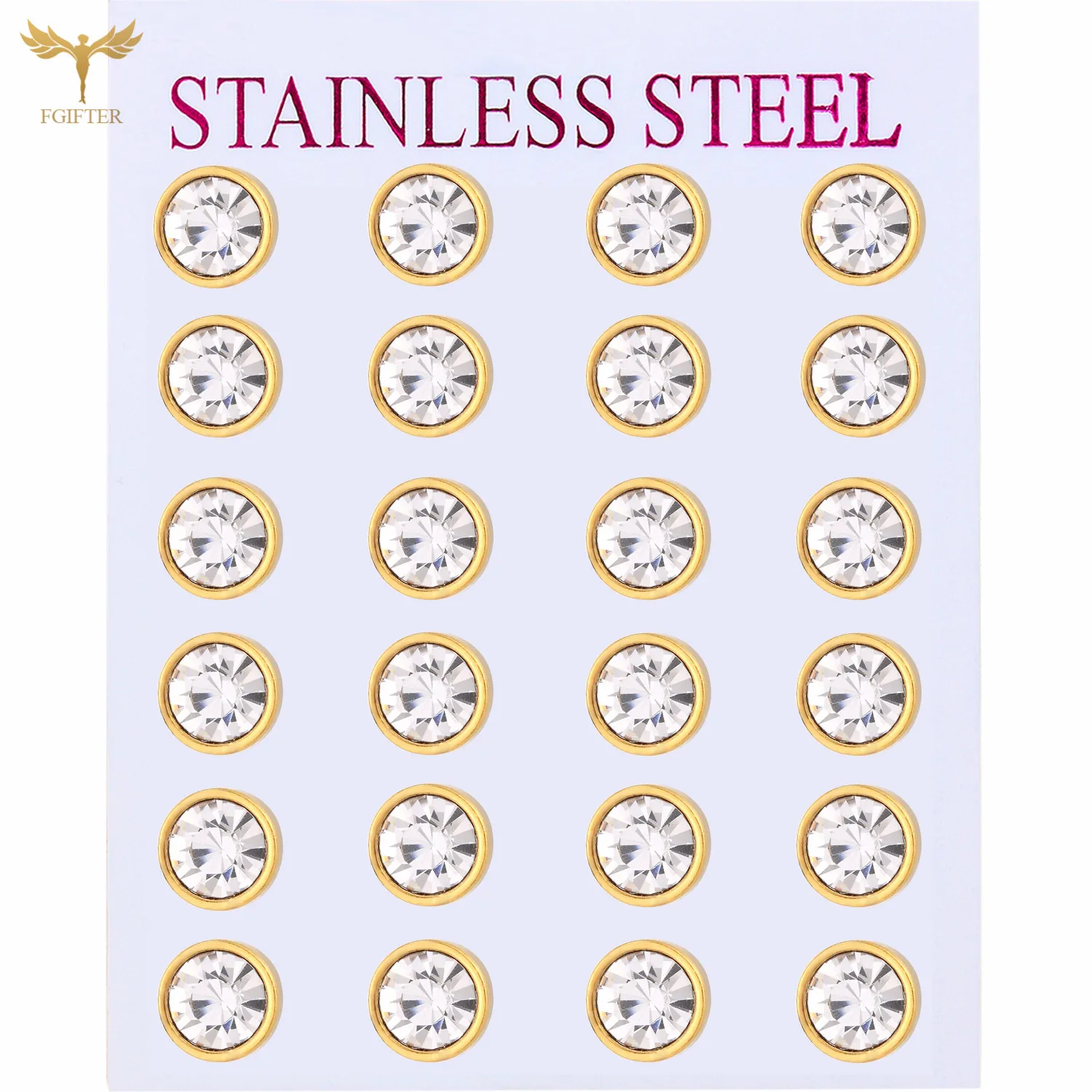 Женские серьги, круглые серьги-гвоздики со стразами из нержавеющей стали, простые модные блестящие ювелирные изделия с кристаллами, оптовая продажа, 12 пар