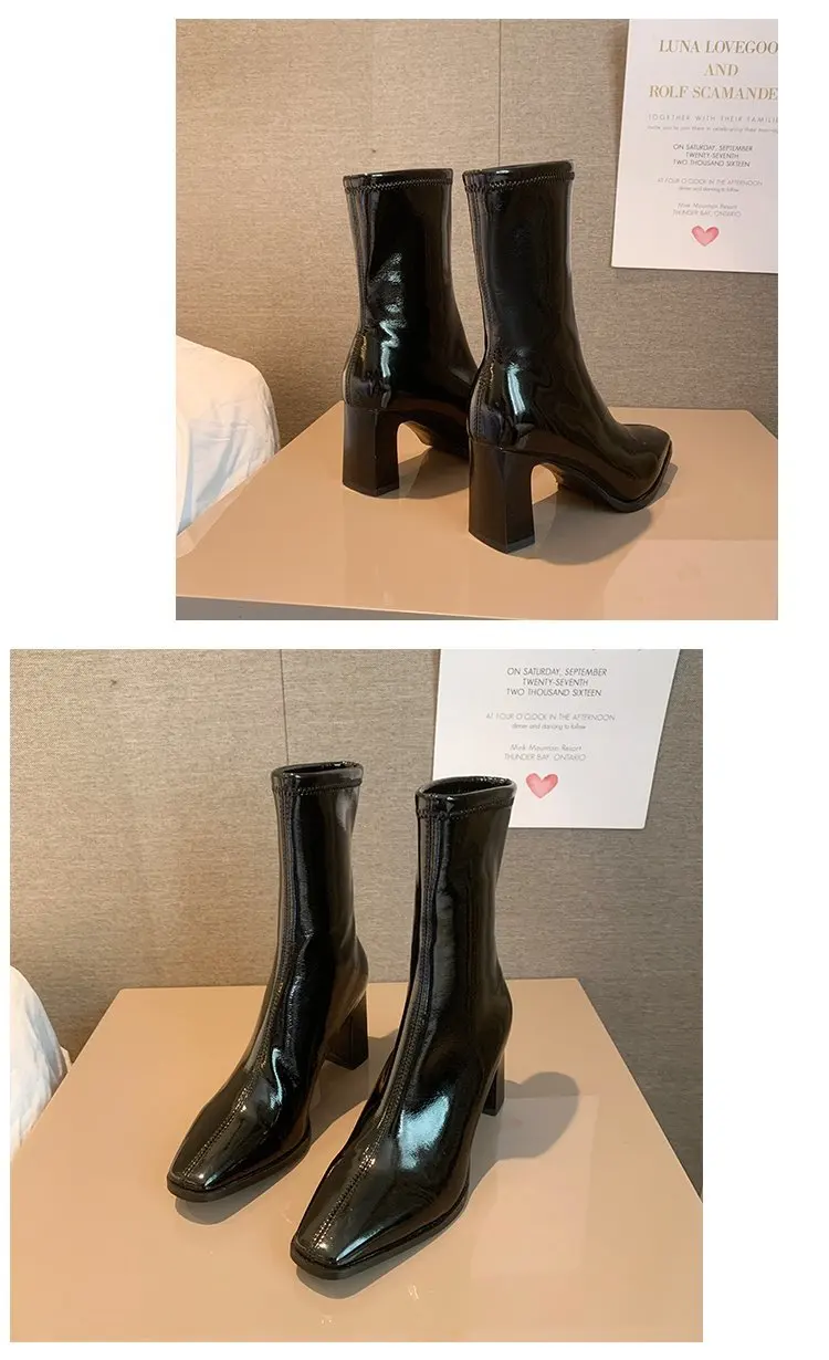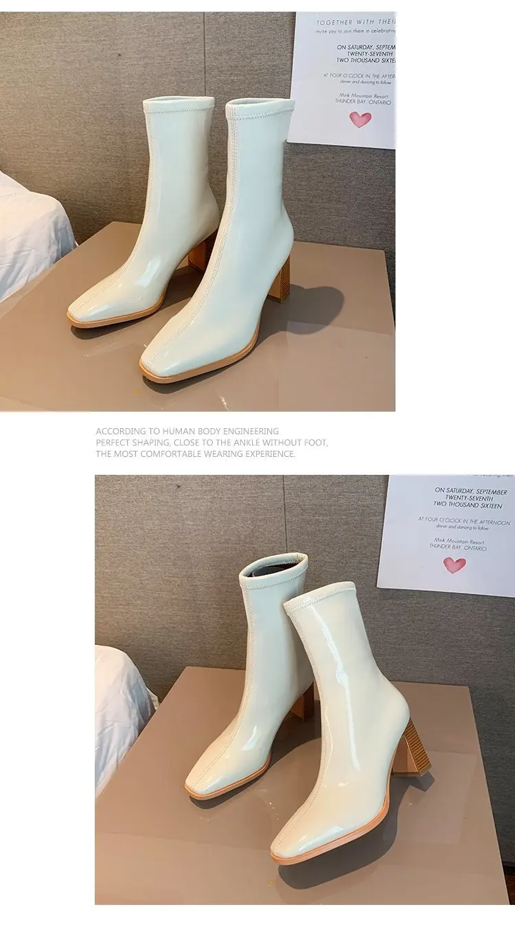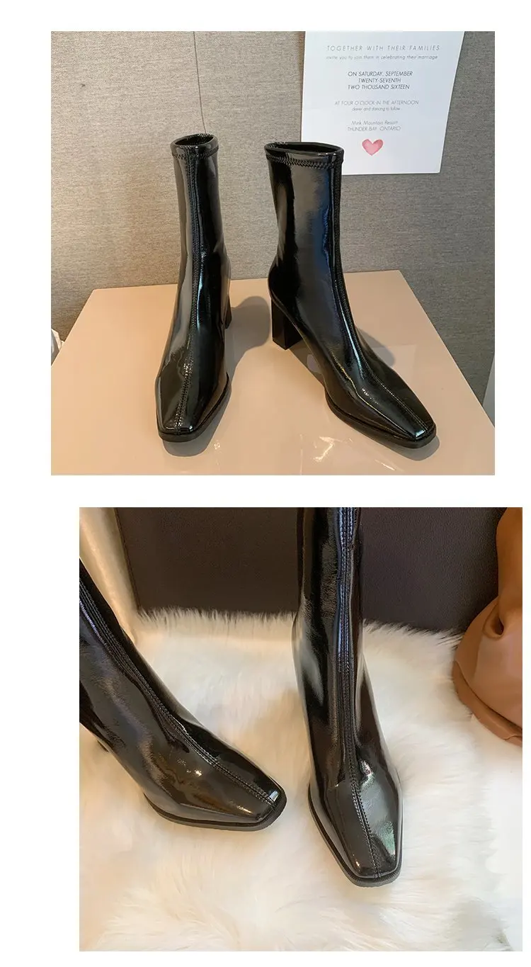 Женские короткие ботинки с квадратным носком, Модные Новые однотонн...