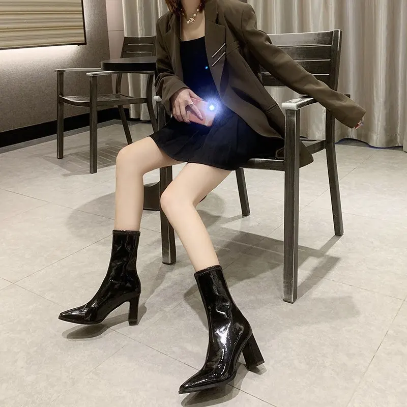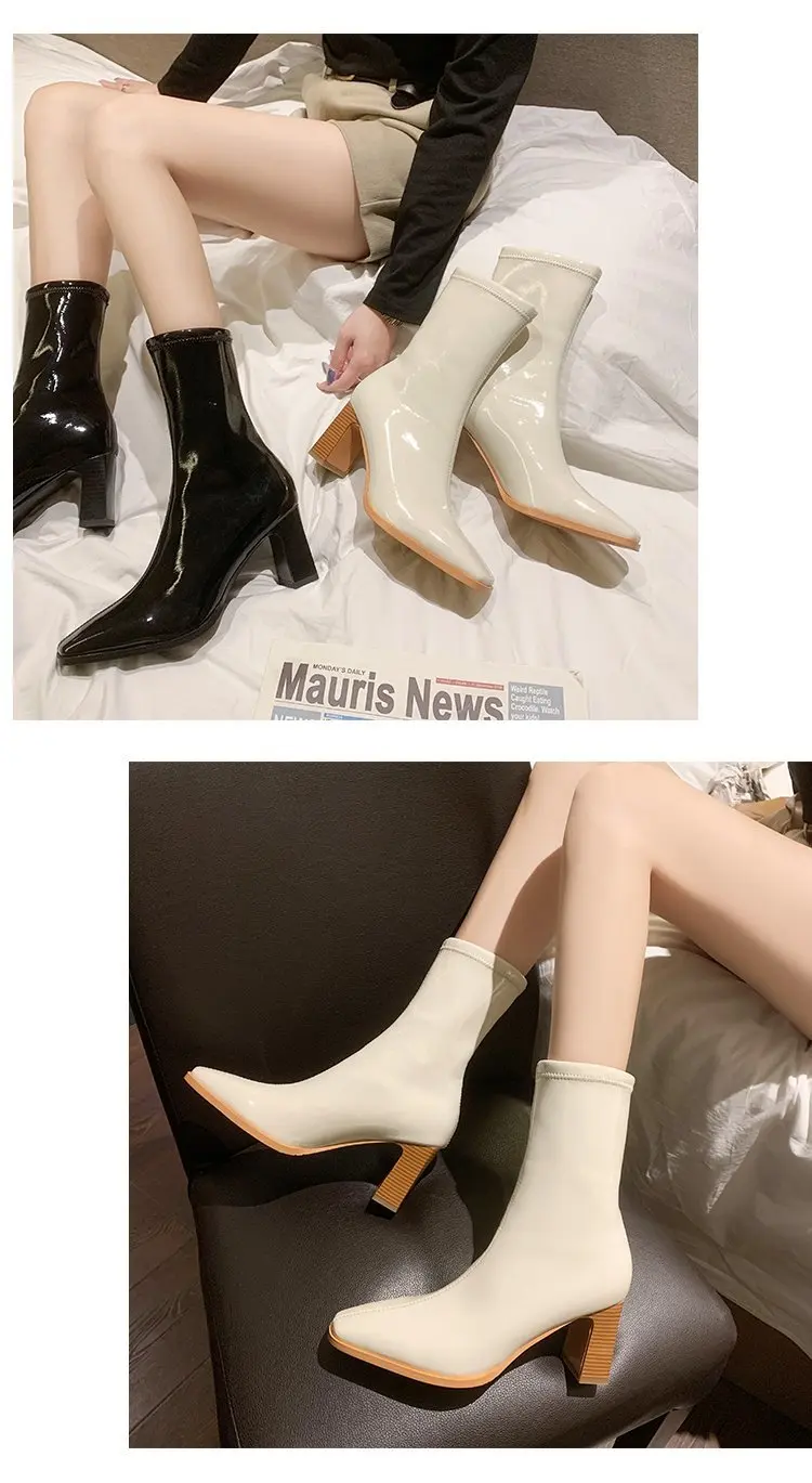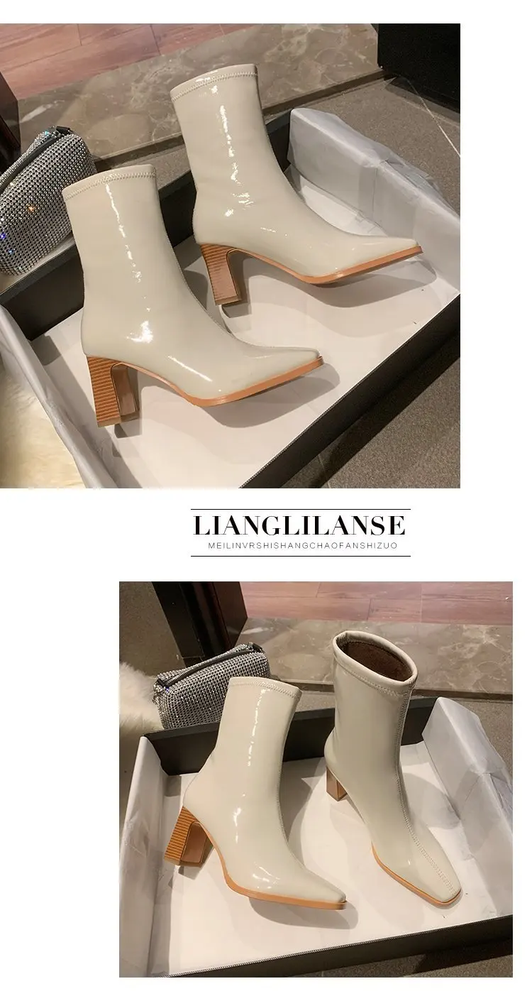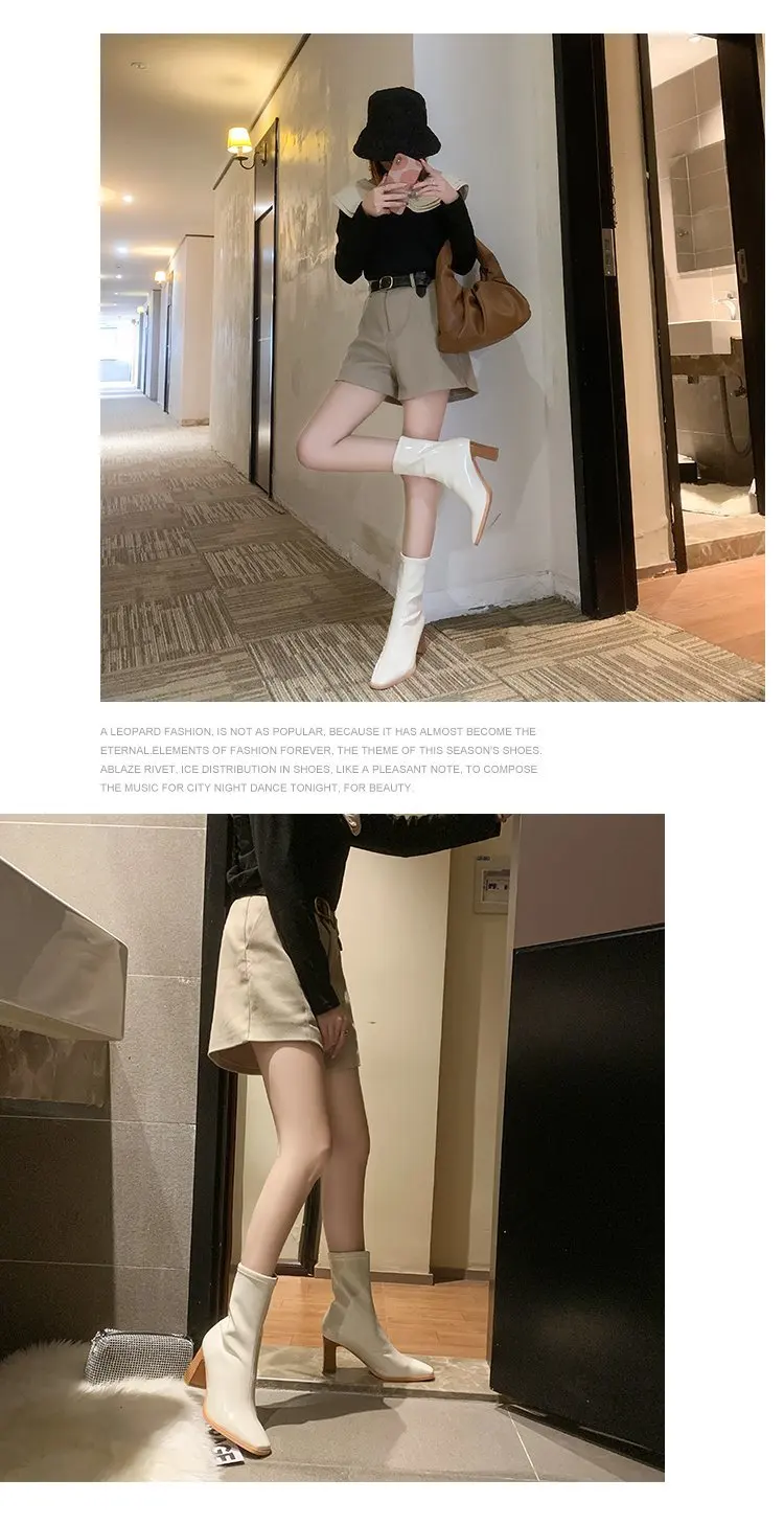 Женские короткие ботинки с квадратным носком, Модные Новые однотонн...