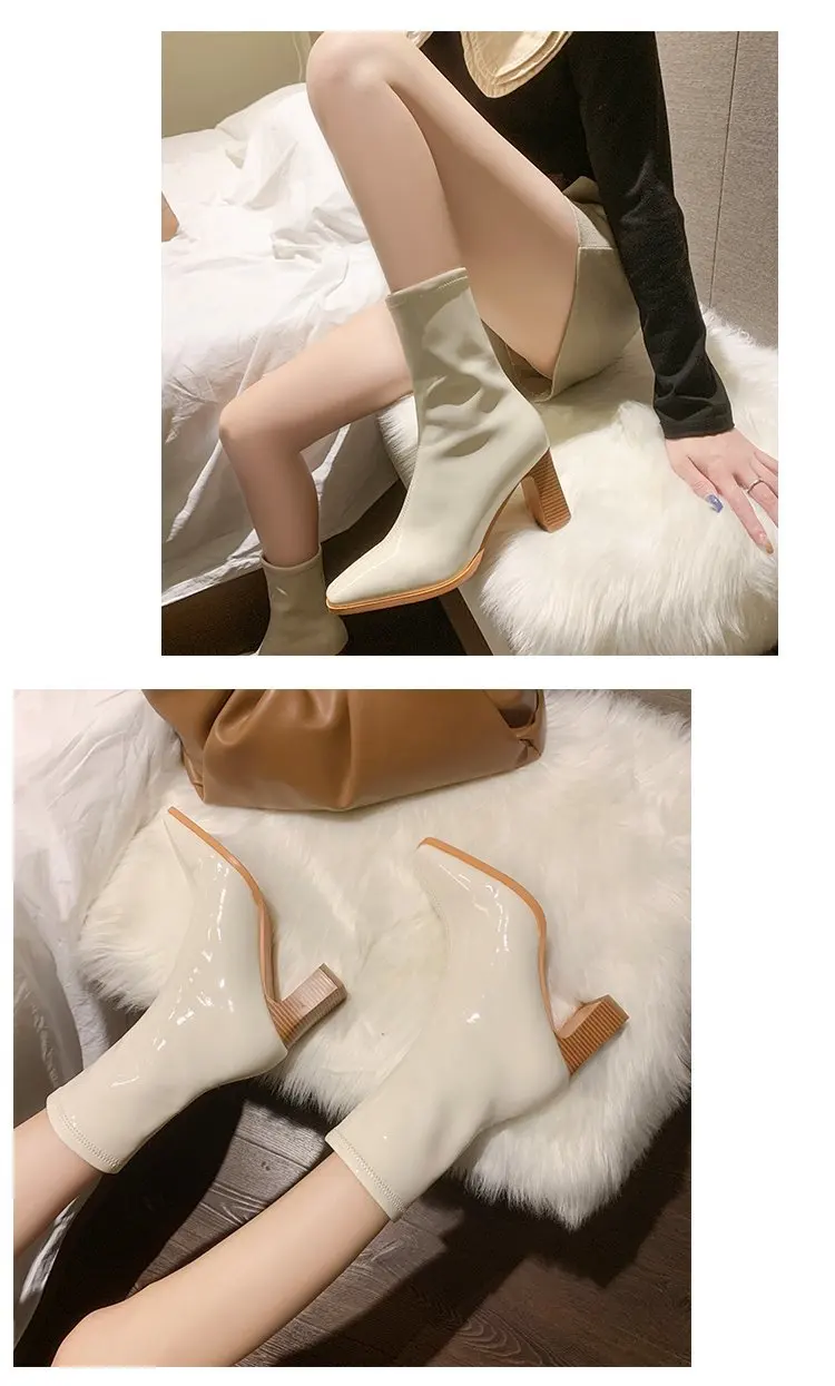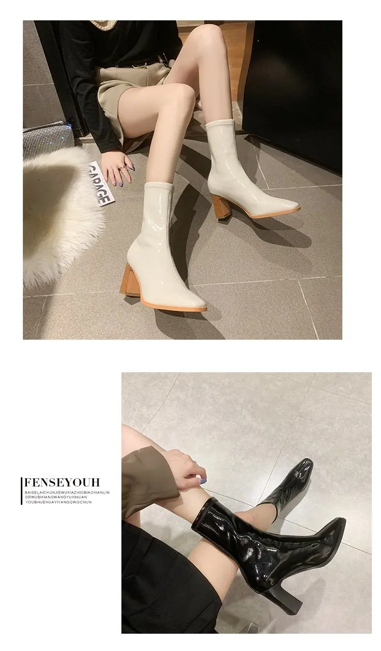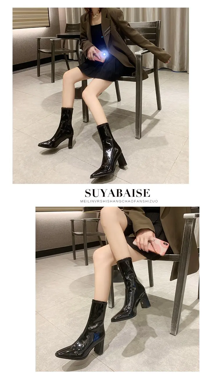 Женские сапоги до середины икры; Коллекция 2020 года; Модные черные сапоги на высоком каблуке; Женские зимние теплые плюшевые пикантные белые сапоги