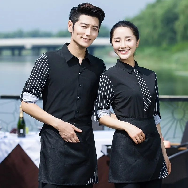Униформа официанта с длинным рукавом для женщин, кафе, персонал, рабочая одежда, кафе, магазин, униформа официантки, KTV бар, рабочий сервис, шеф-повар, топы, комбинезоны
