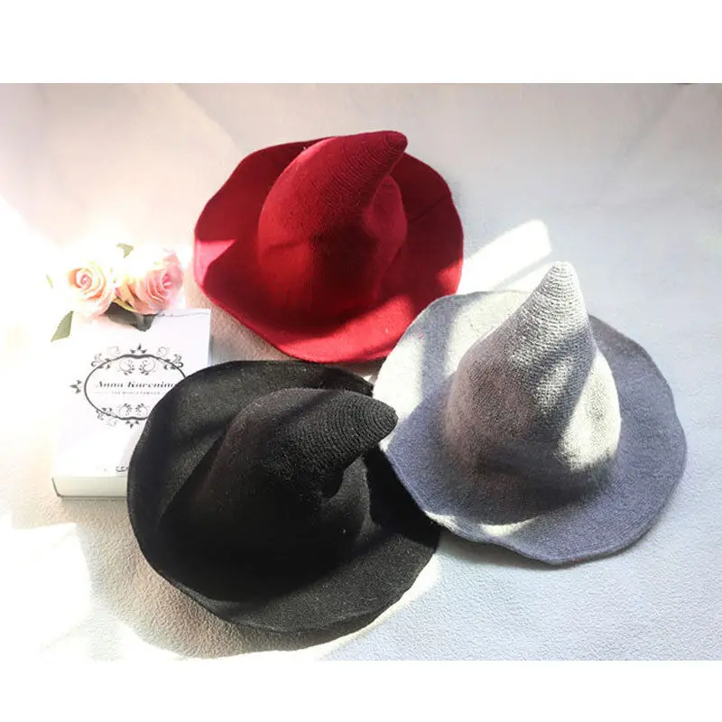 Шляпа ведьмы на Хэллоуин, шерстяная шляпа ведьмы, однотонная, мягкая, один размер, праздничные шляпы