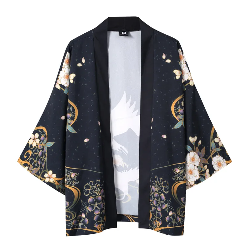 Японский ворона кимоно с рисунком Streer одежда юката Женская Haori в стиле Харадзюку, кимоно, кардиган верхняя одежда мужская белая японская одежда